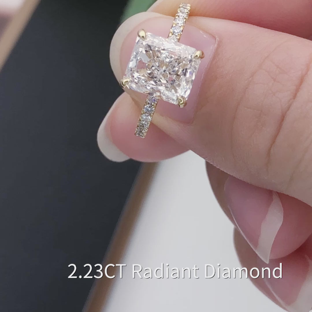 | Piedra central | Diamante de talla radiante cultivado en laboratorio (aprox. 2,23 ct.) |