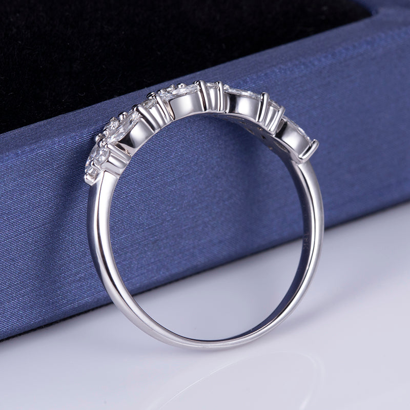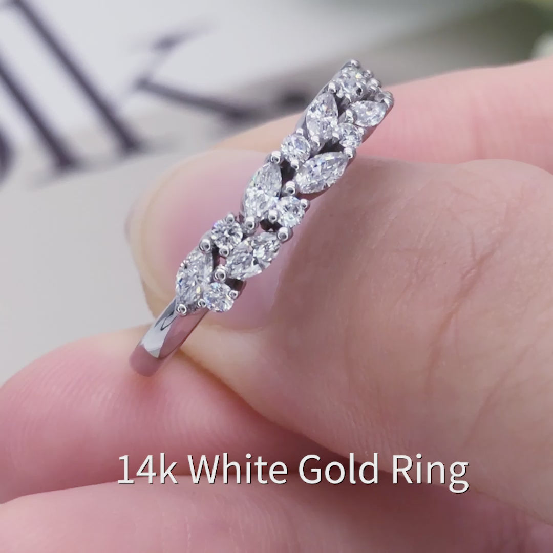 Eco-545: Petal Radiance – Alianza de eternidad con diamantes redondos y talla marquesa cultivados en laboratorio en oro blanco de 18 quilates