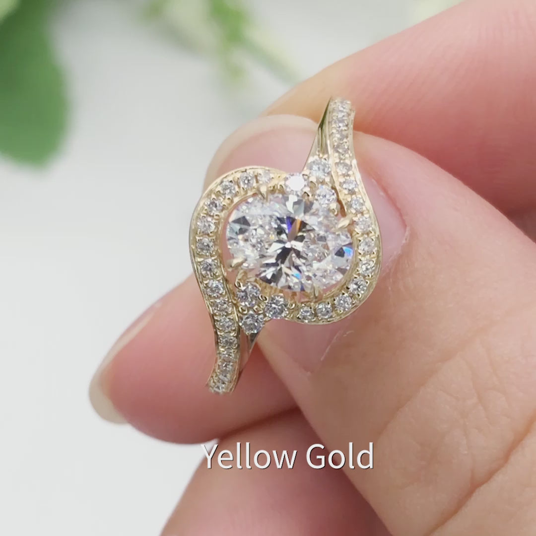 Eco-568: Remolino de Luz – Anillo con halo de diamantes ovalados cultivados en laboratorio en oro amarillo de 18 quilates