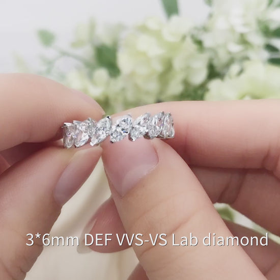 Eco-623: Hojas Eternas – Anillo de eternidad con diamantes marquesa cultivados en laboratorio en oro blanco de 18 quilates