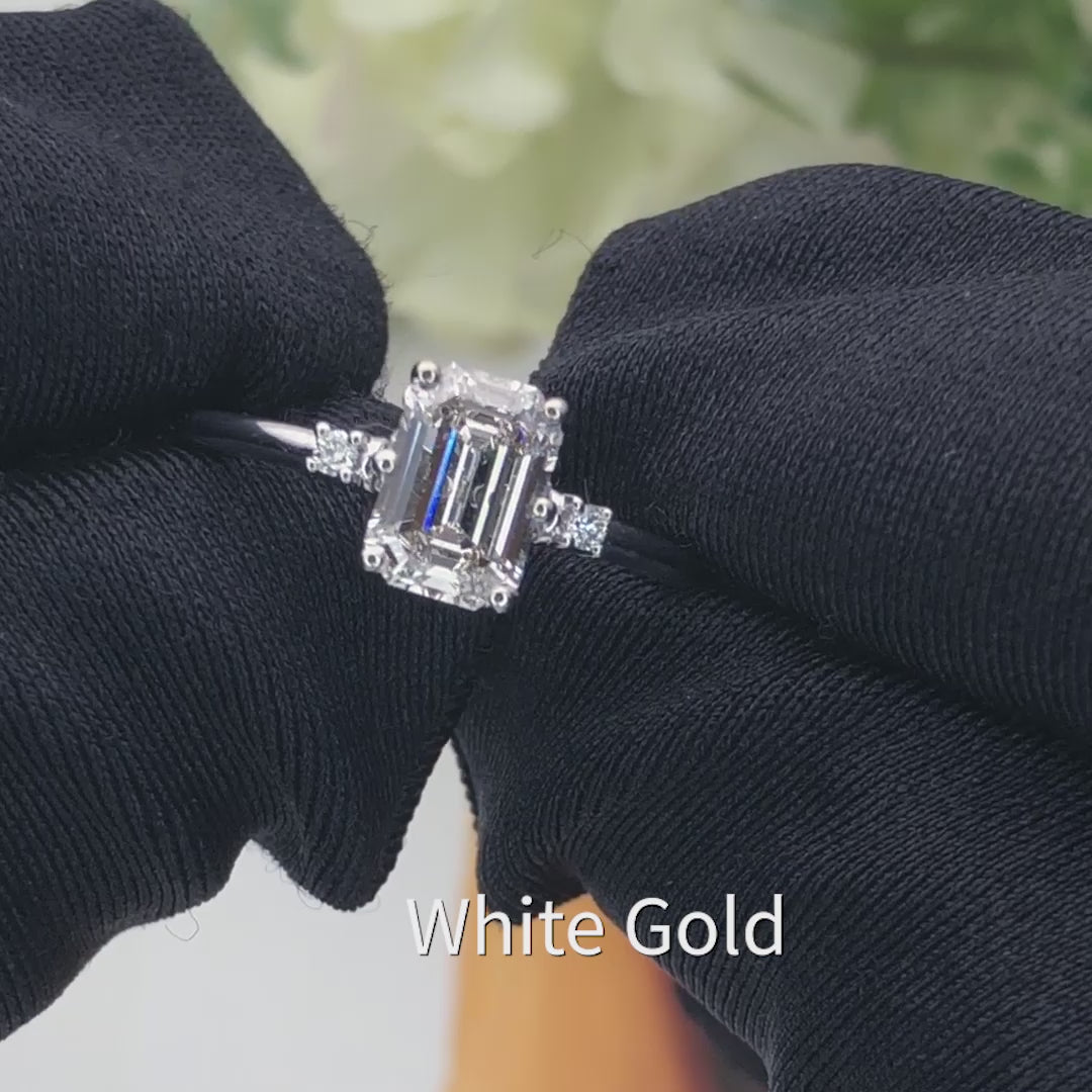 | Piedra central | Diamante de talla esmeralda cultivado en laboratorio (aprox. 1,2 ct.) |
