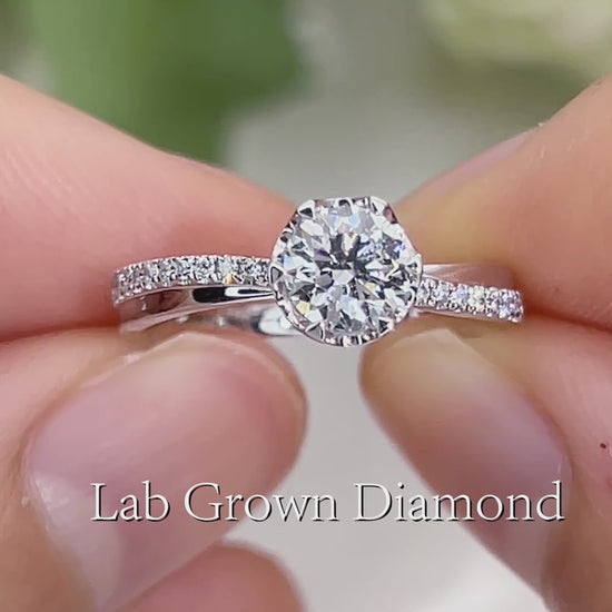 Eco-709: Hilo Celestial – Anillo solitario con pavé de diamantes cultivados en laboratorio en oro blanco de 18 quilates