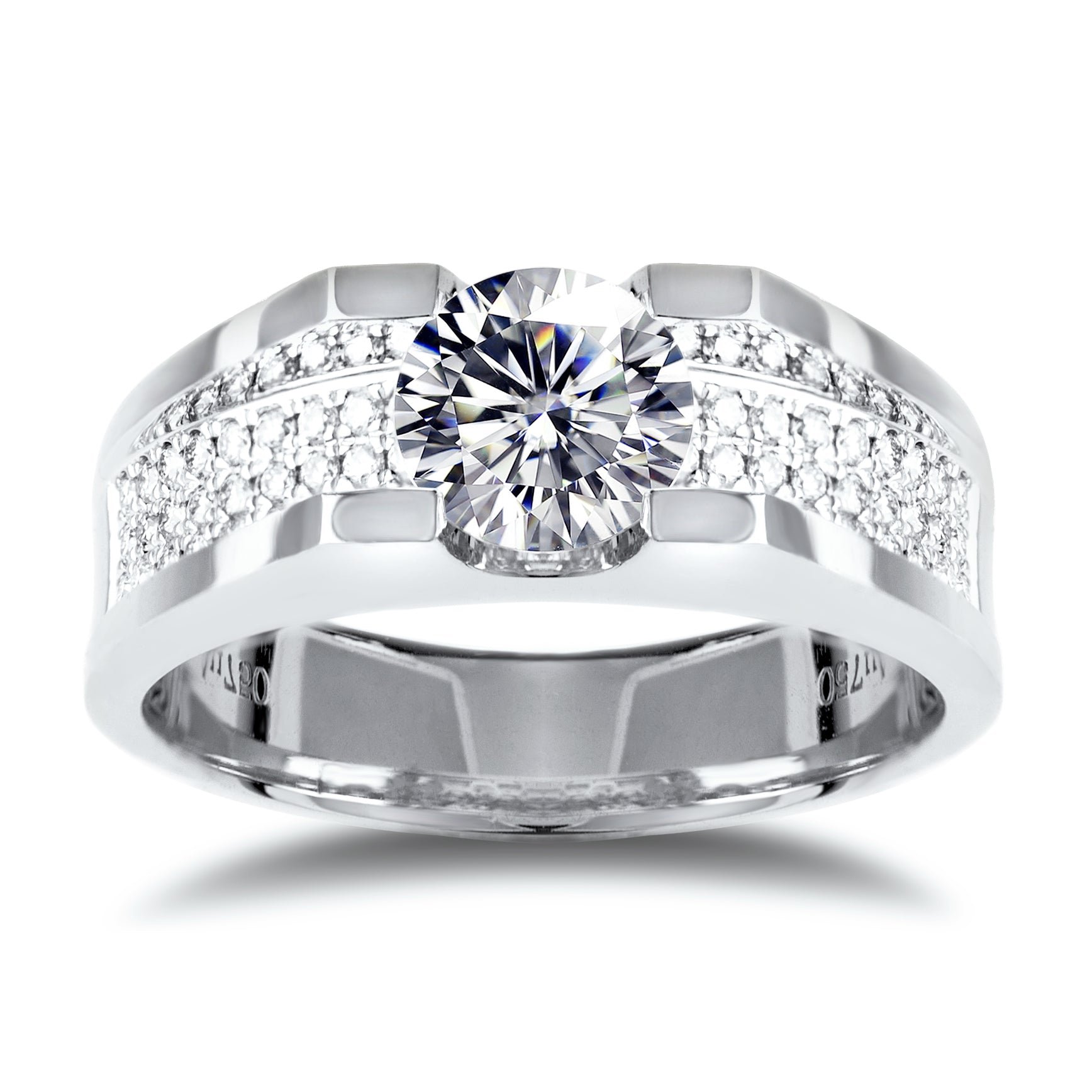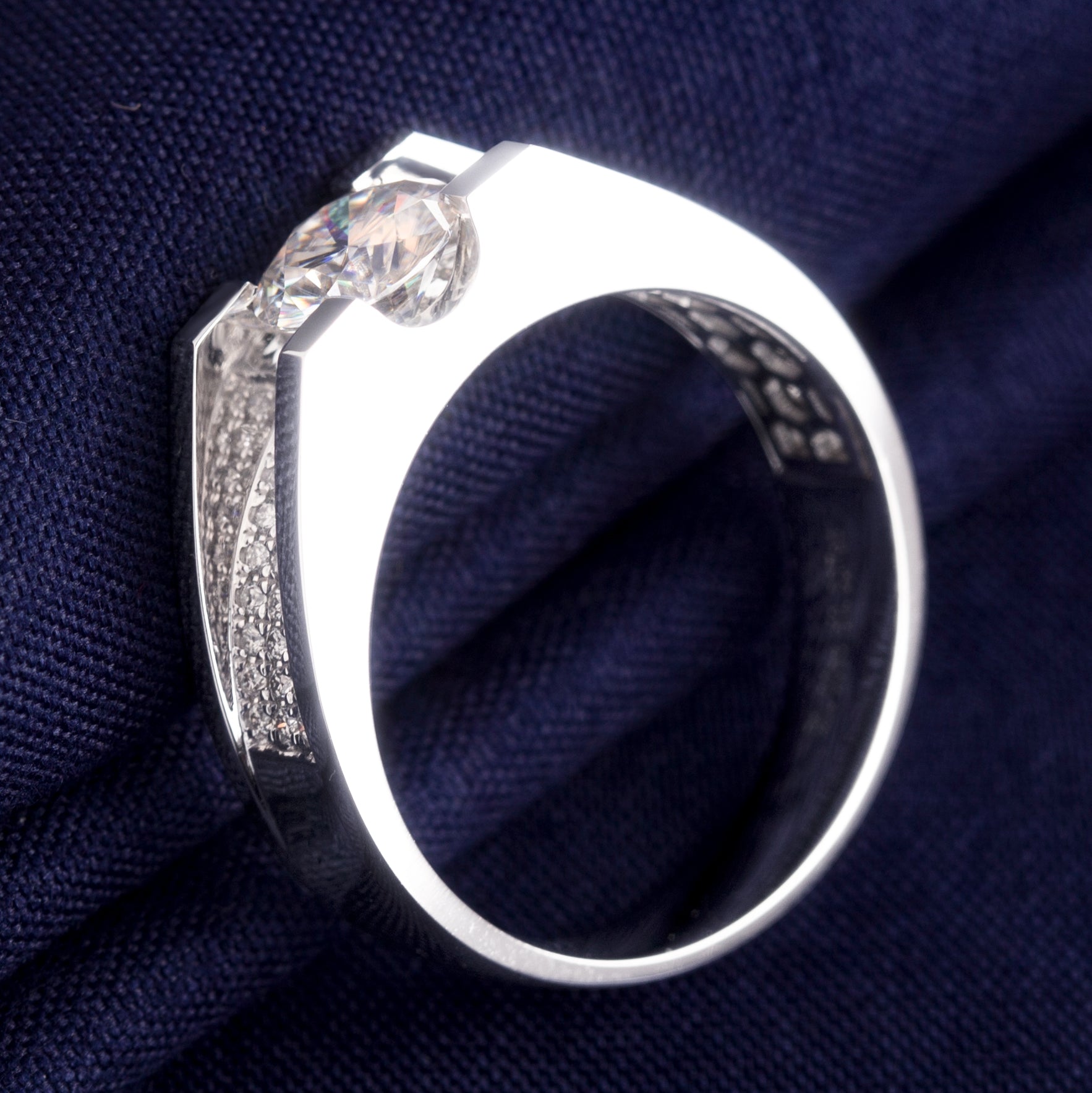 Harley-057: Axis of Light – Anillo con bisel pavé de diamantes cultivados en laboratorio en oro blanco de 18 quilates