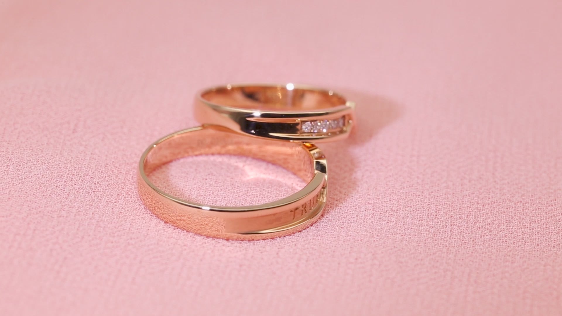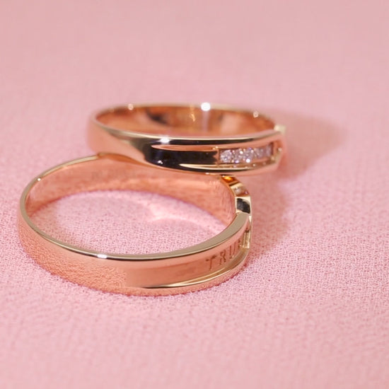 Harley-183: True Love Interlock – Anillos de pareja con diamantes cultivados en laboratorio en oro rosa de 18 quilates