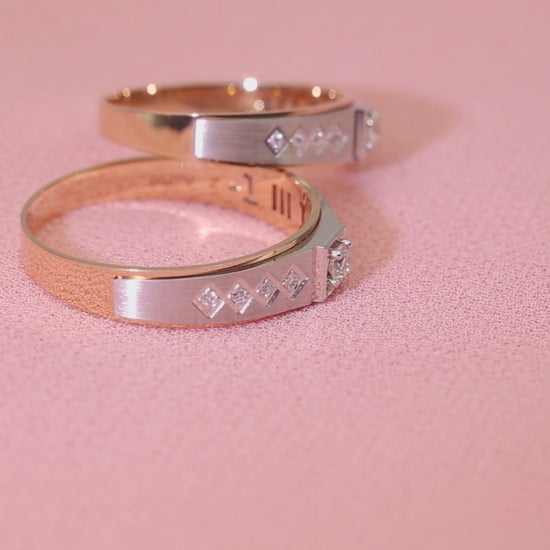 Harley-184: Love Inscription – Bandas de bisel con diamantes cultivados en laboratorio en oro blanco y amarillo de 18 quilates