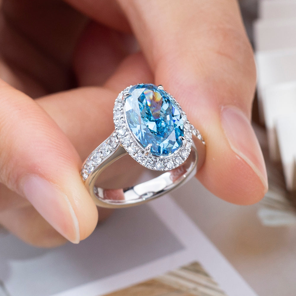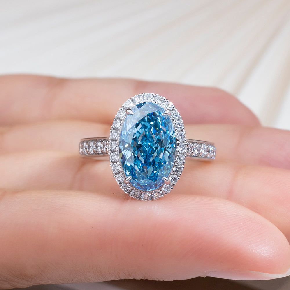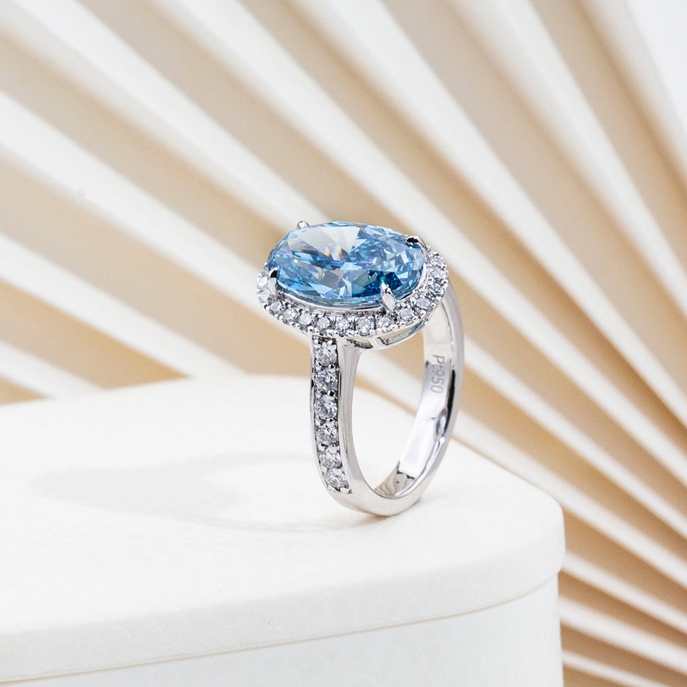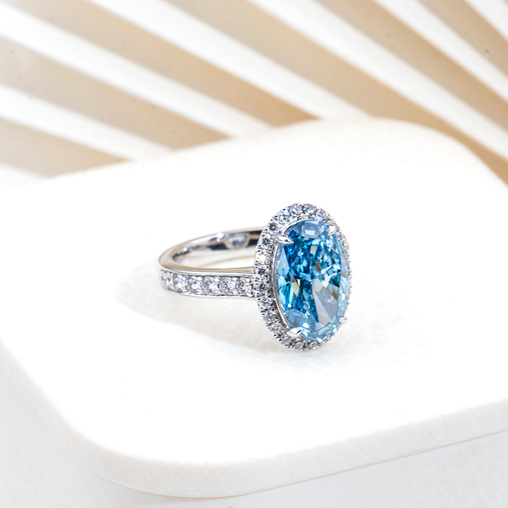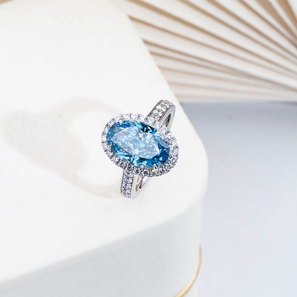 | センターストーン | ラボで育成されたオーバルカットのブルーサファイア(約 2.2 カラット) |