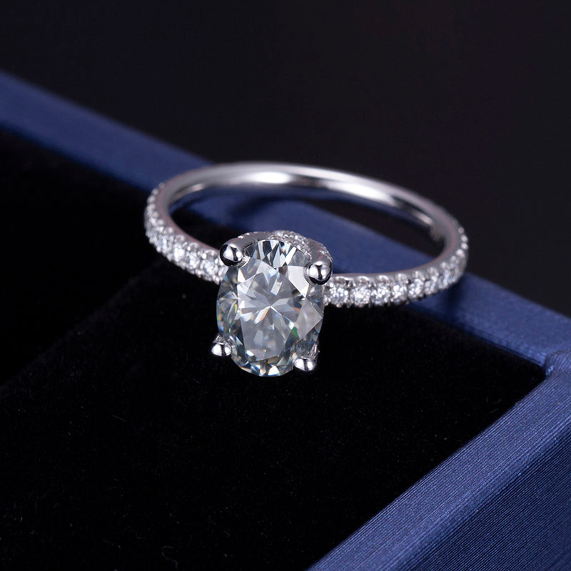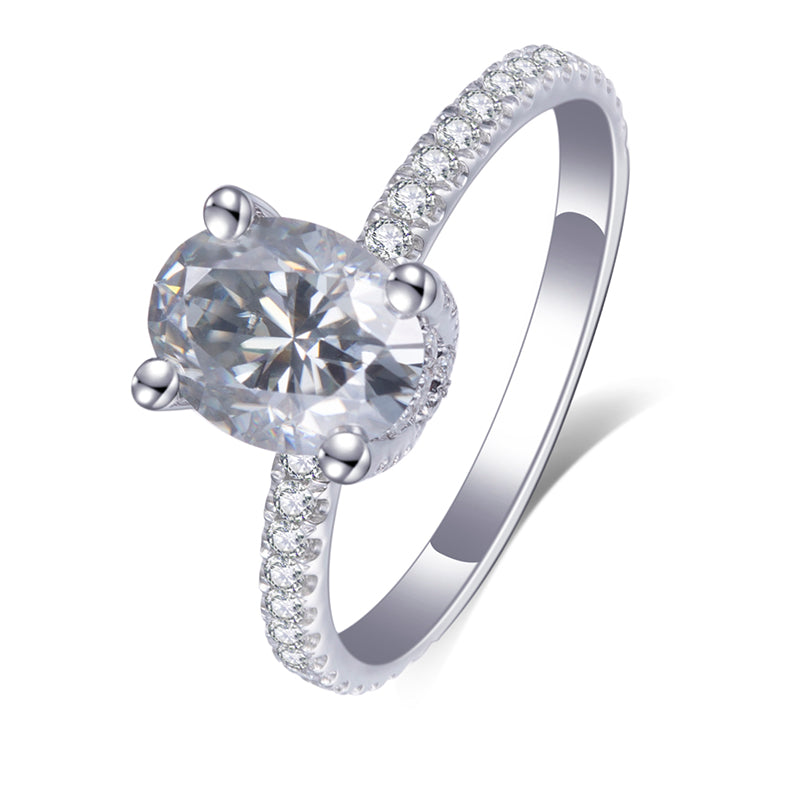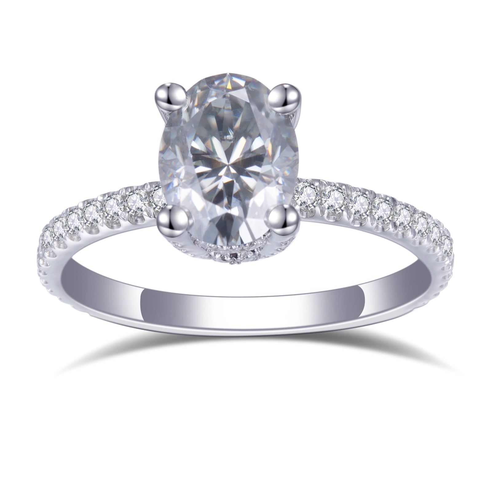Eco-405: オーバルブリリアンス – ラボグロウンダイヤモンドパヴェエンゲージリング(18Kホワイトゴールド)