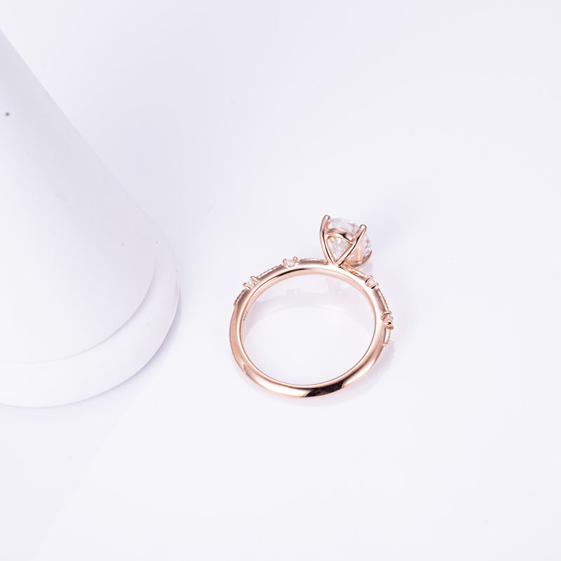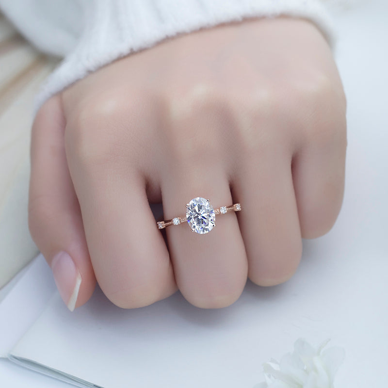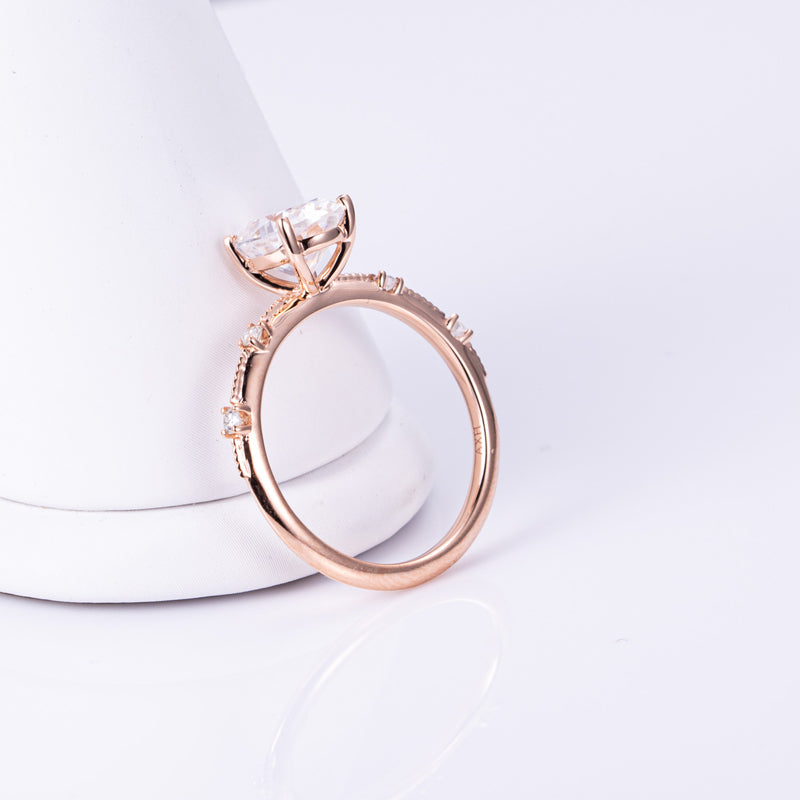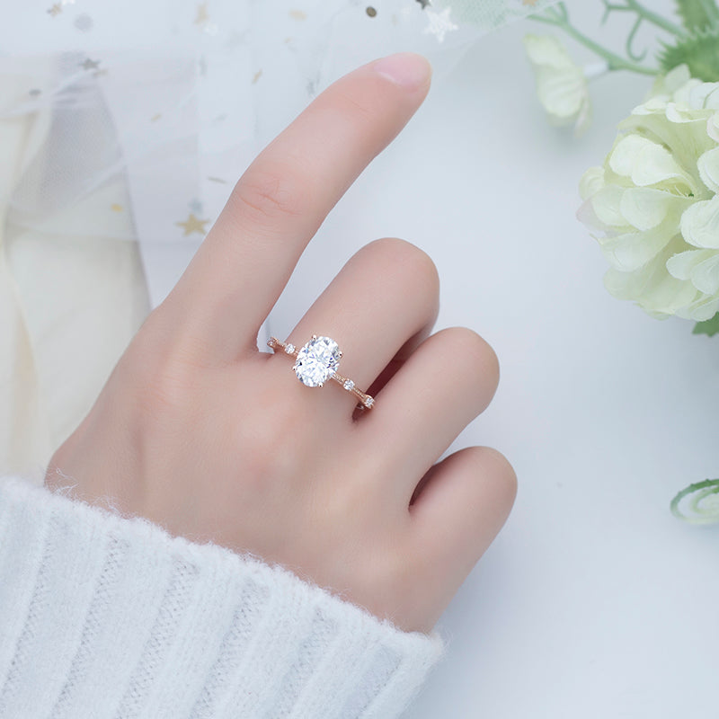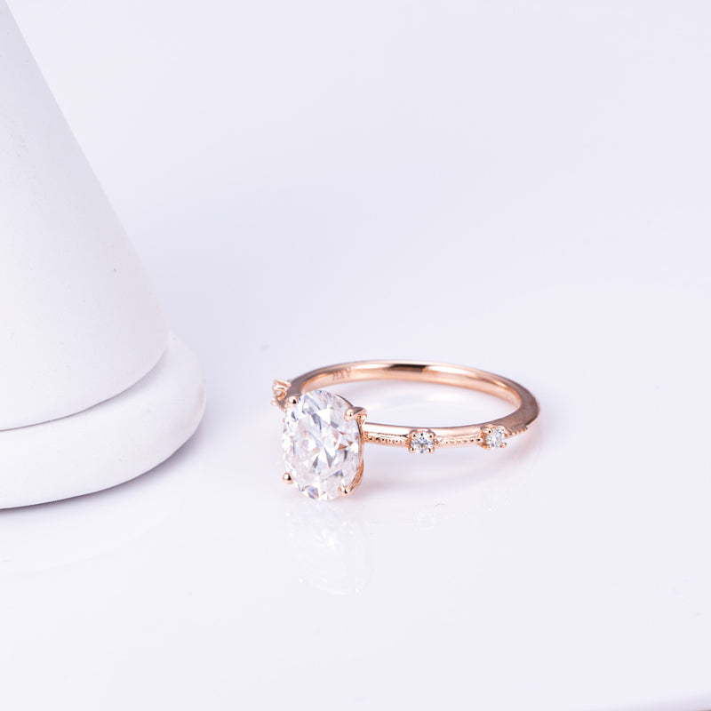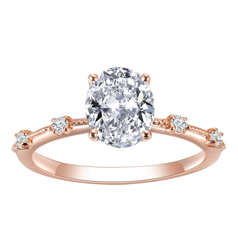 Eco-632: ローズホライゾン – ラボグロウンオーバルダイヤモンドアクセントリング(18Kローズゴールド)