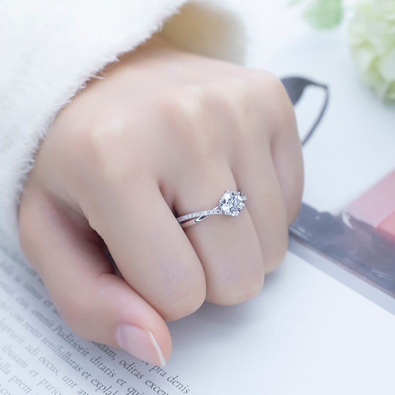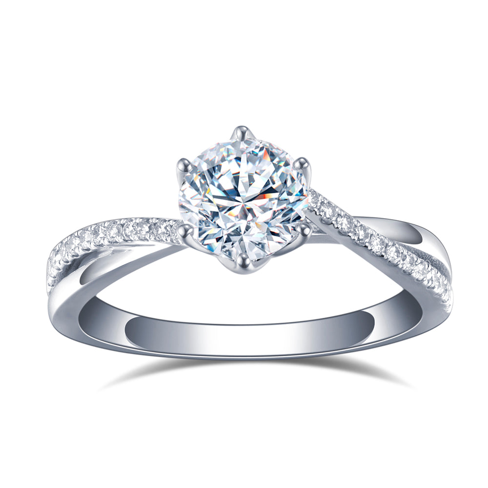 Eco-650: ツイステッドクラリティ – 18Kホワイトゴールドのラボグロウンダイヤモンドソリティアリング