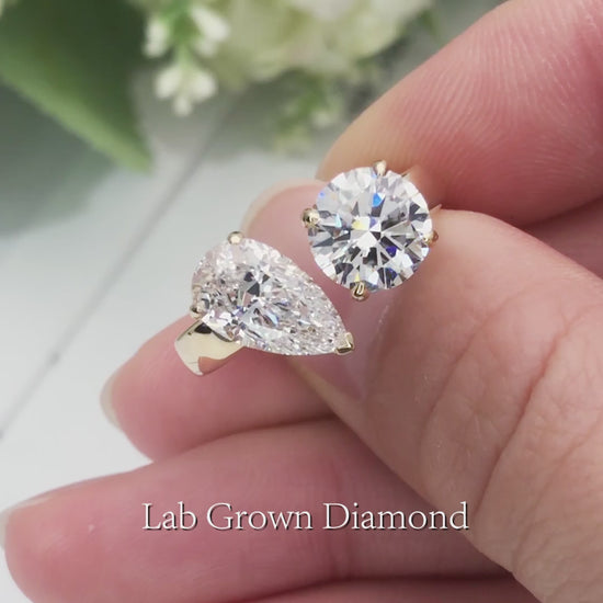 | 宝石 | ラボで育成されたペアシェイプ&ラウンドブリリアントダイヤモンド(約 1.8 カラット) |