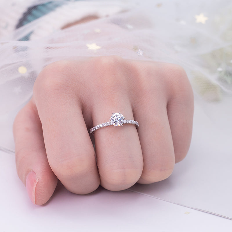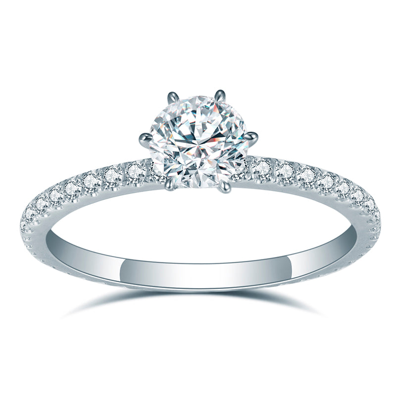 Eco-689: スターリット グレース – ラボグロウン ダイヤモンド パヴェ ソリティア リング 18K ホワイトゴールド
