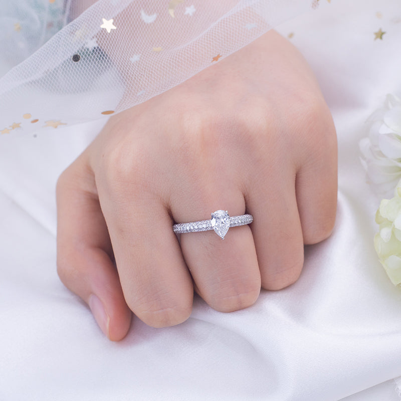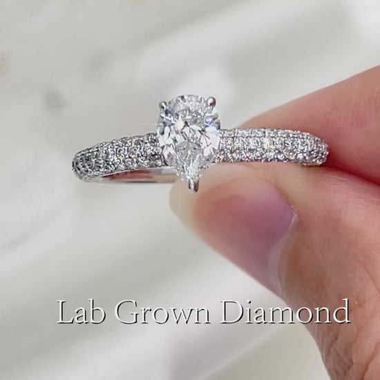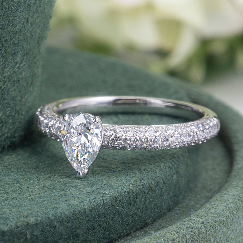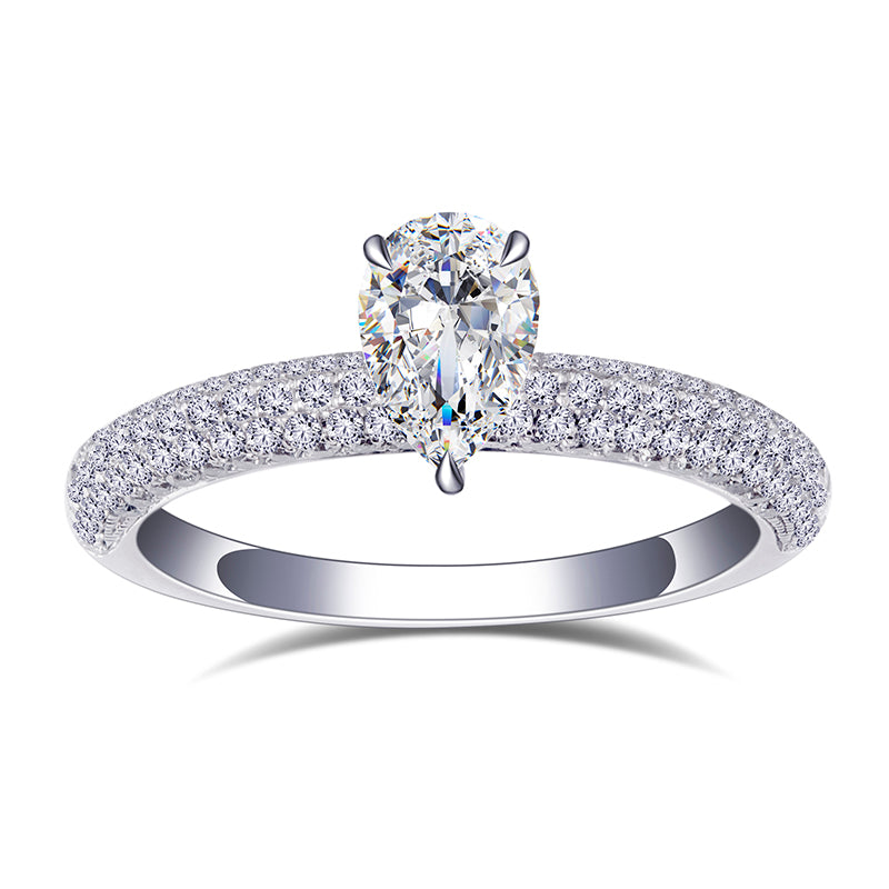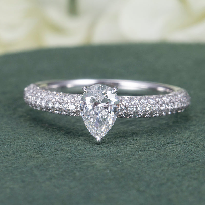 Eco-727: ティアドロップライト – ラボグロウンペアシェイプダイヤモンドパヴェリング(18Kホワイトゴールド)