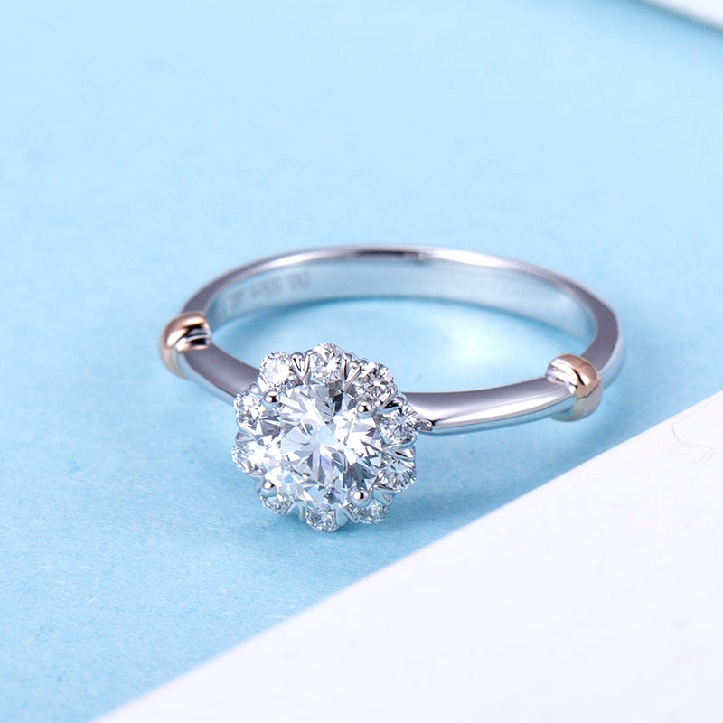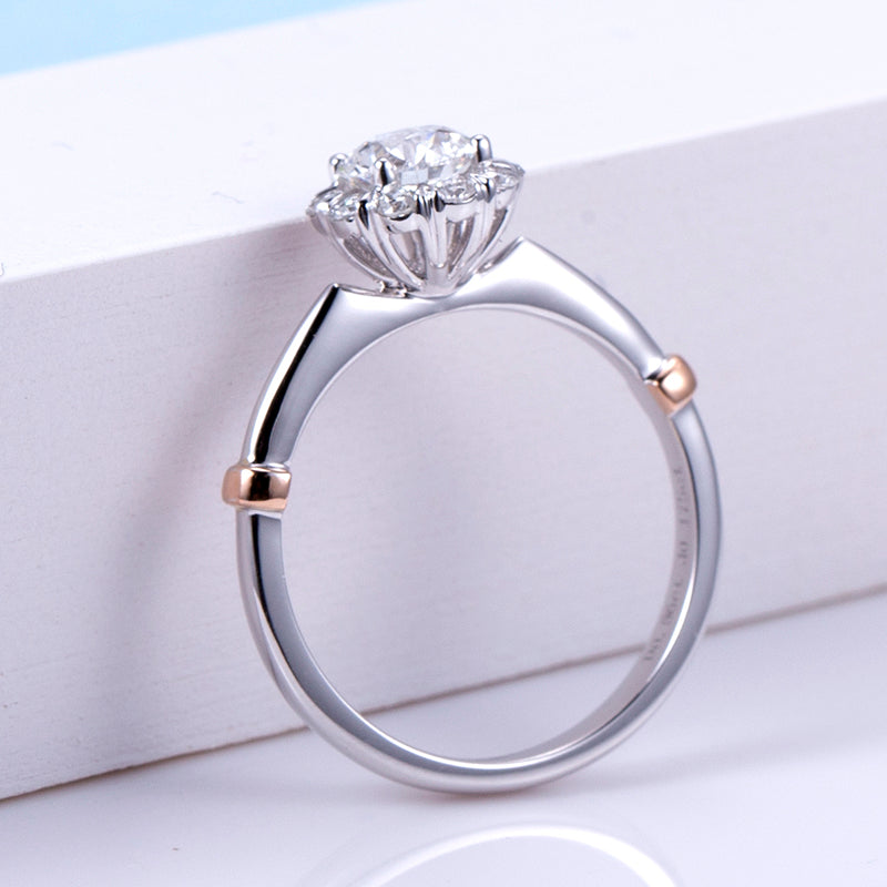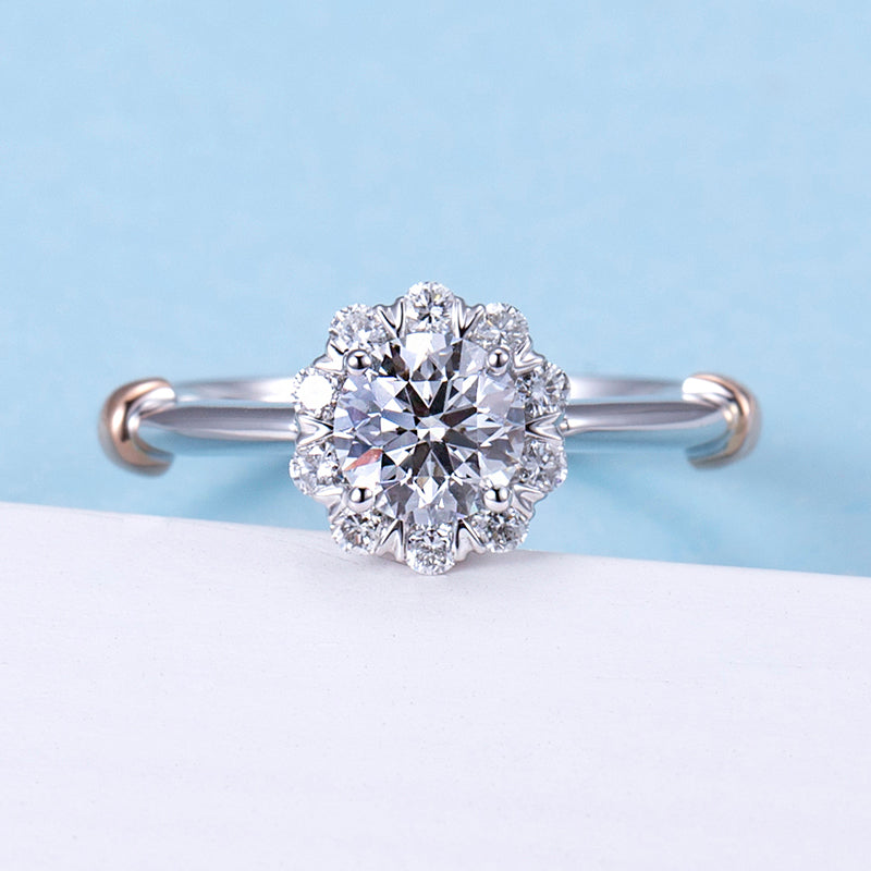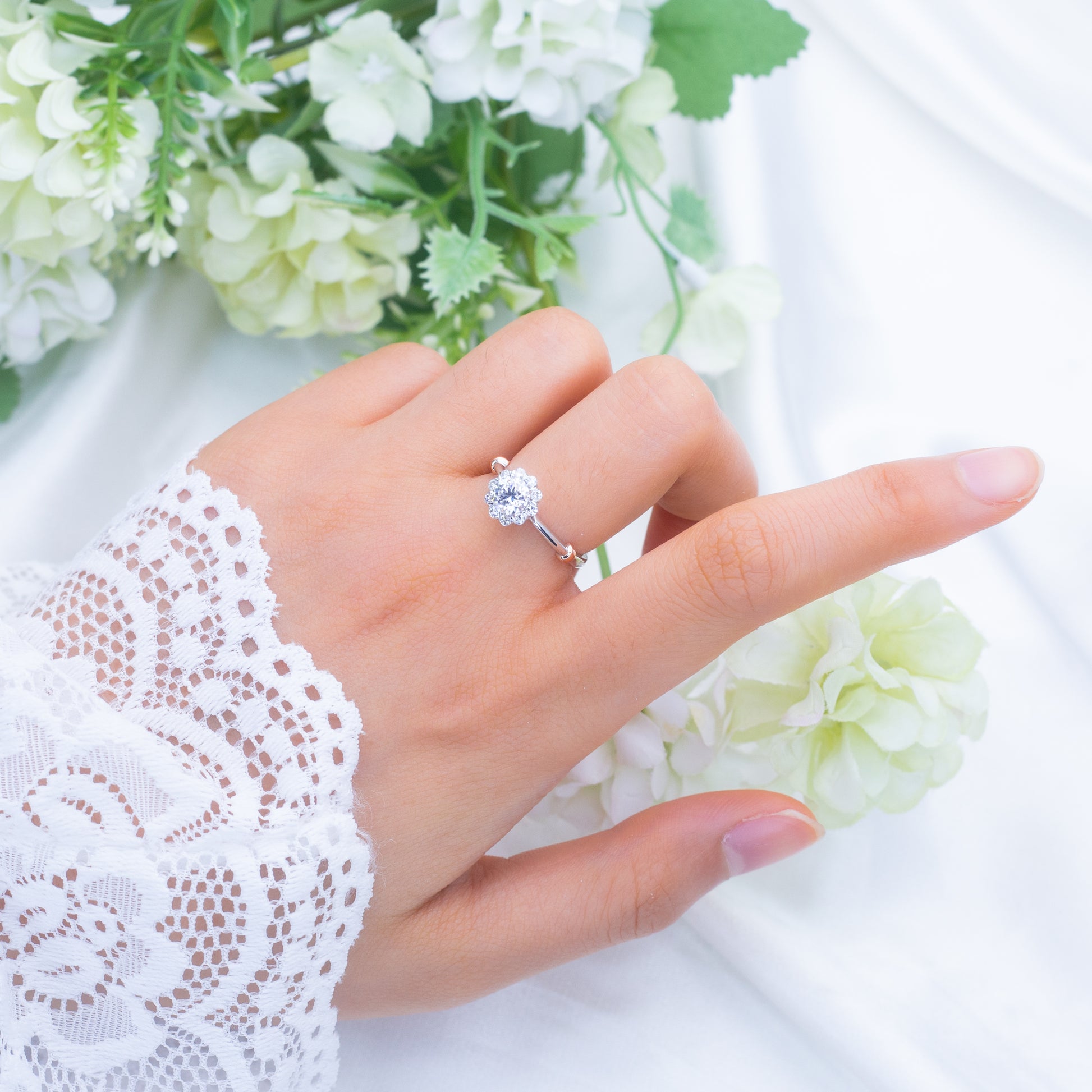 Eco-740: Bloom of Light – ラボグロウンダイヤモンドハローリング(18Kホワイト&ローズゴールド)