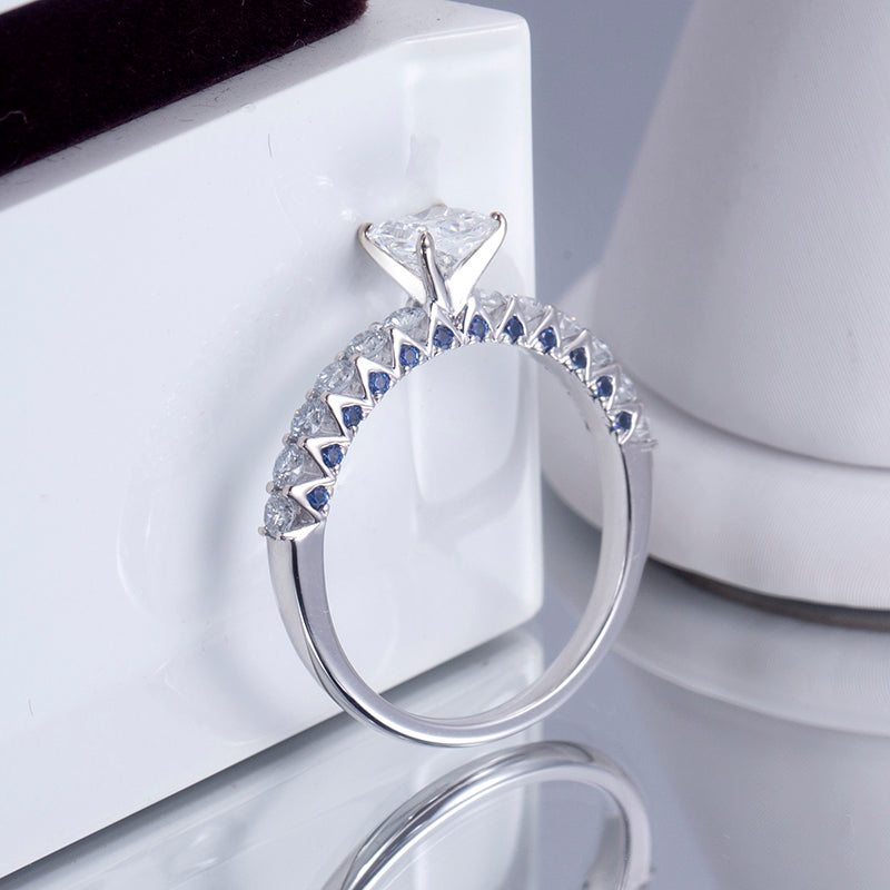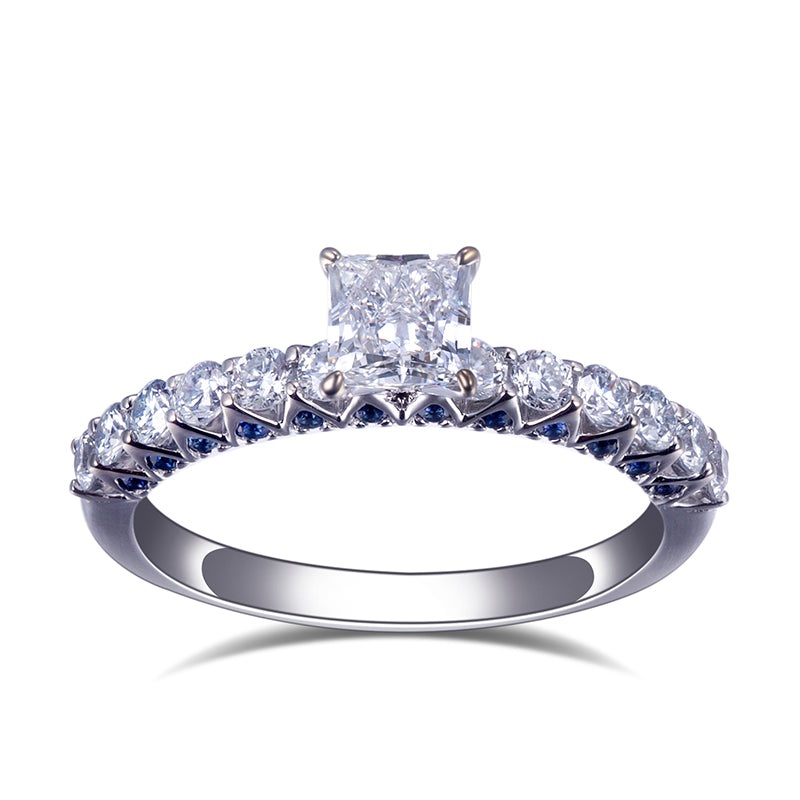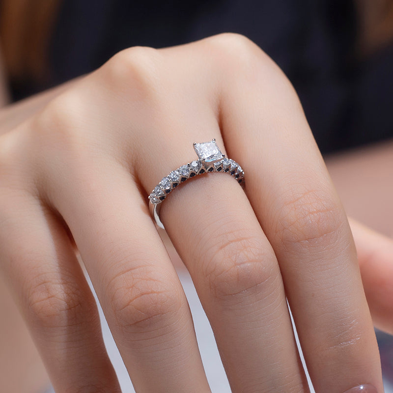 Eco-809: クラリティクラウン - 18Kホワイトゴールドのラボグロウンプリンセスダイヤモンドリング