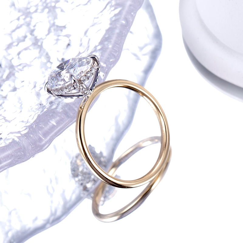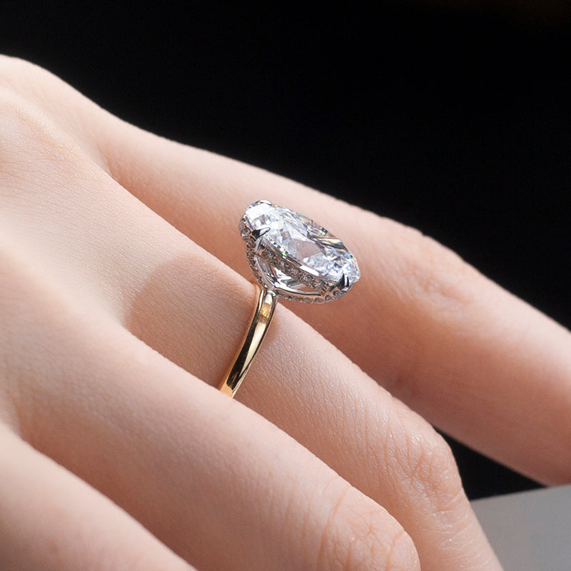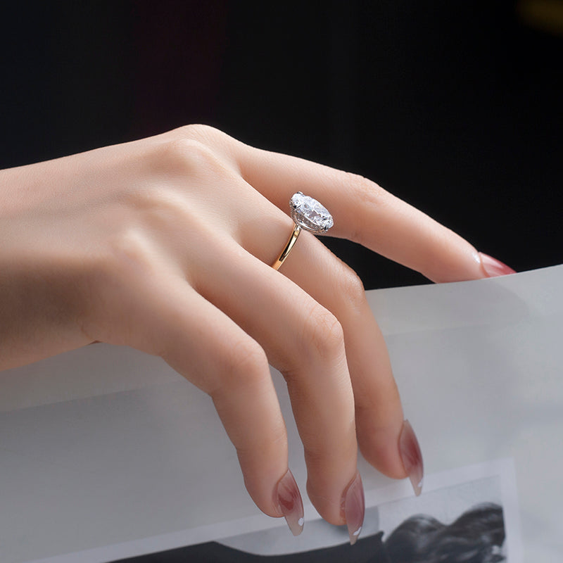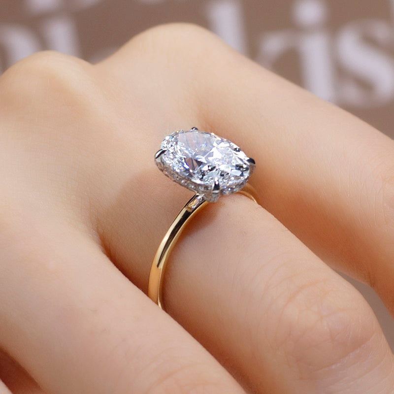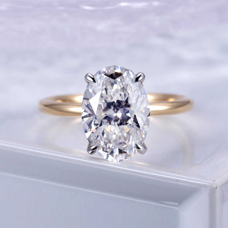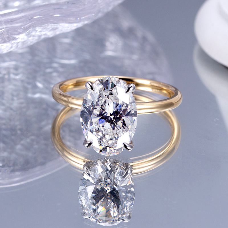 Eco-811: ゴールデンエリプス – ラボグロウンオーバルダイヤモンドソリティアリング(18Kイエローゴールド)