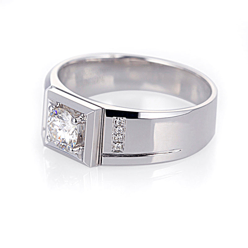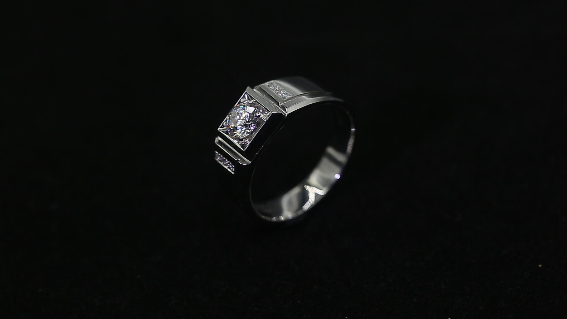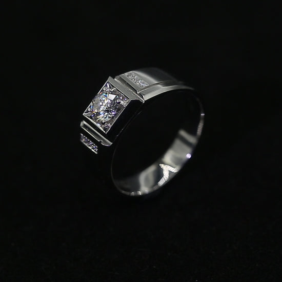 Harley-172は、均整と輝きを湛えたリング。シンメトリー、透明感、そして静かな力強さを彫刻のように表現しています。中央には、約0.8カラットのラボグロウンラウンドブリリアントダイヤモンドがセットされ、建築的な精密さで石を縁取るスクエアベゼルセッティングが施されています。