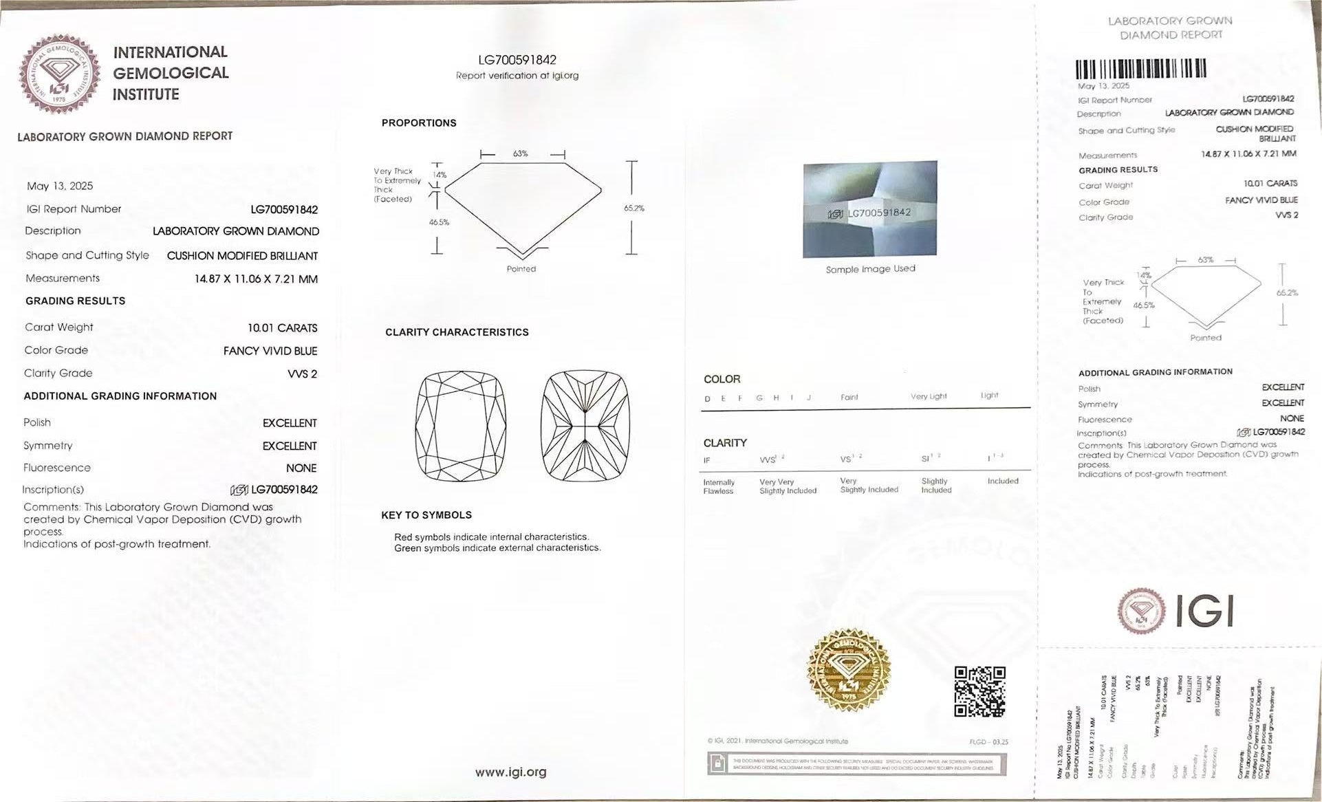 - IGI Certificate: LG 707565899 - Internationally recognized