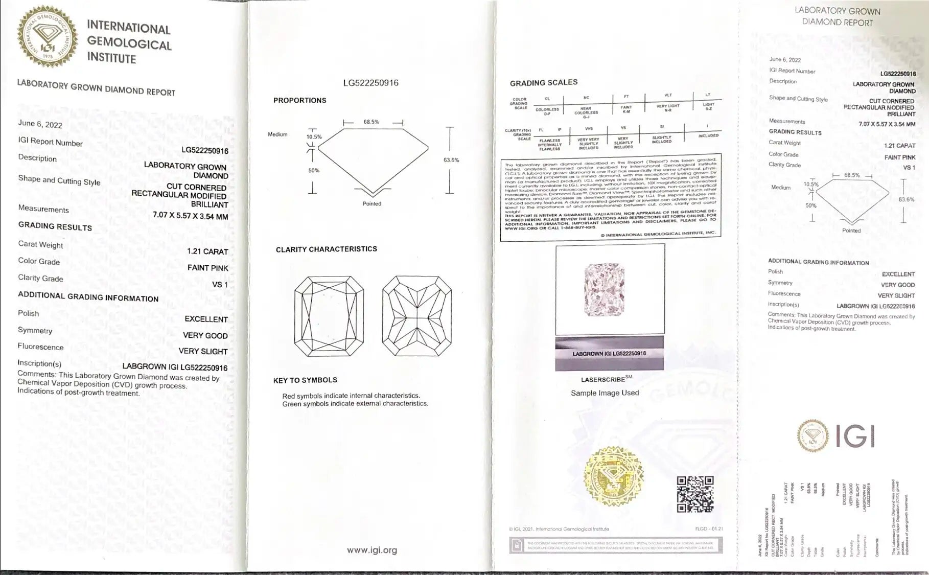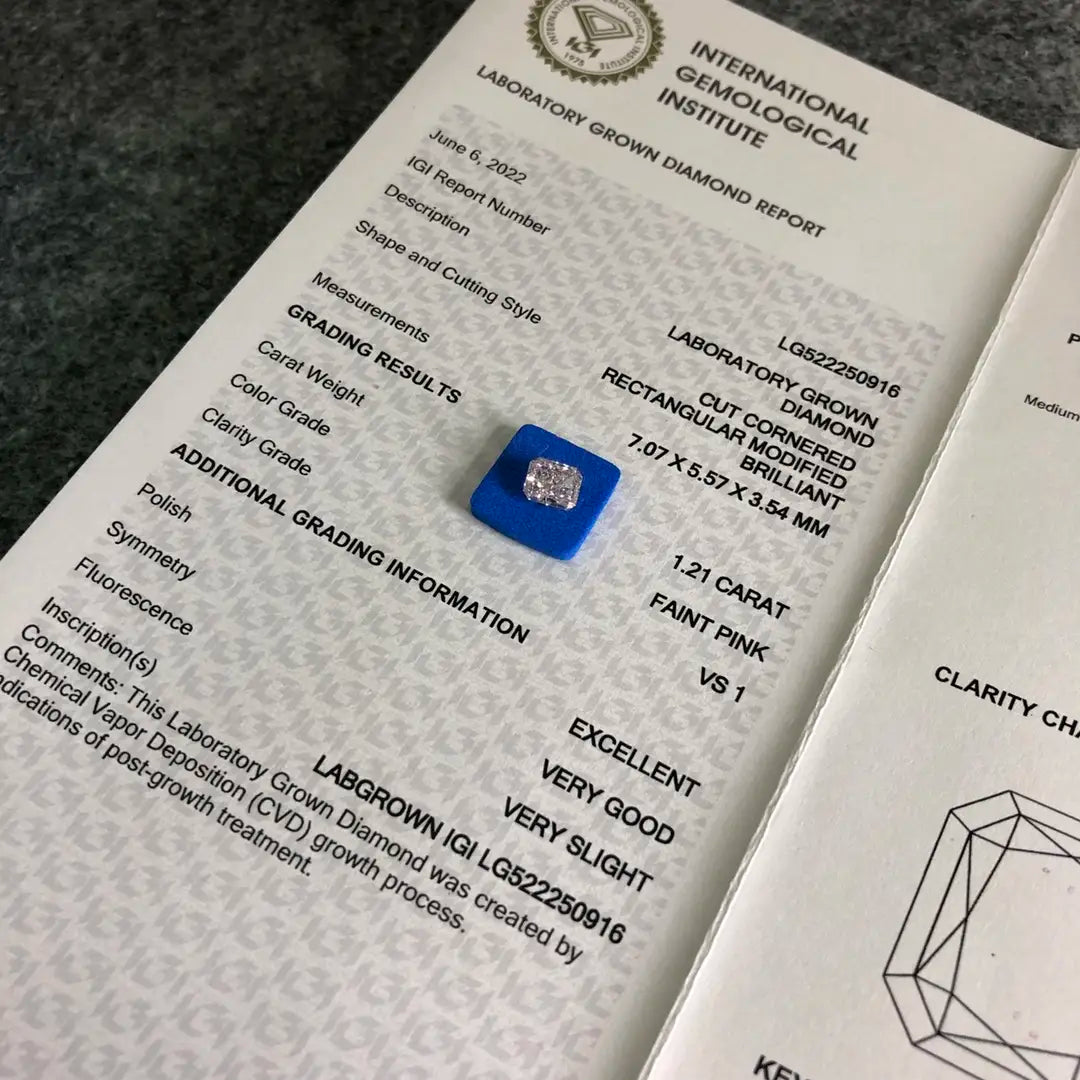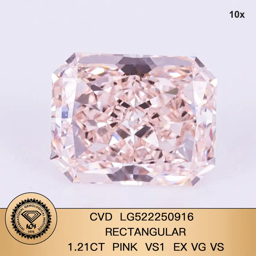 Radiant Cut 1.21ct Faint Pink VS1 CVD Lab Grown Diamond IGI Certificate LG522250916