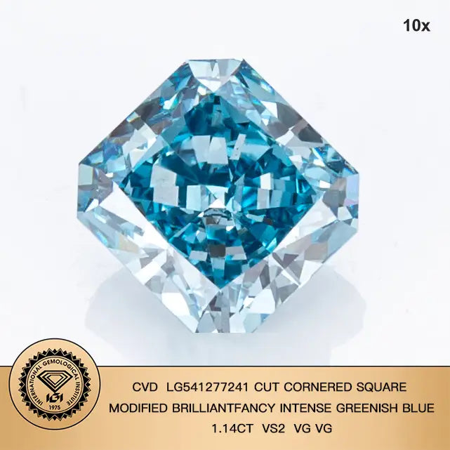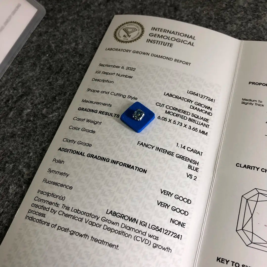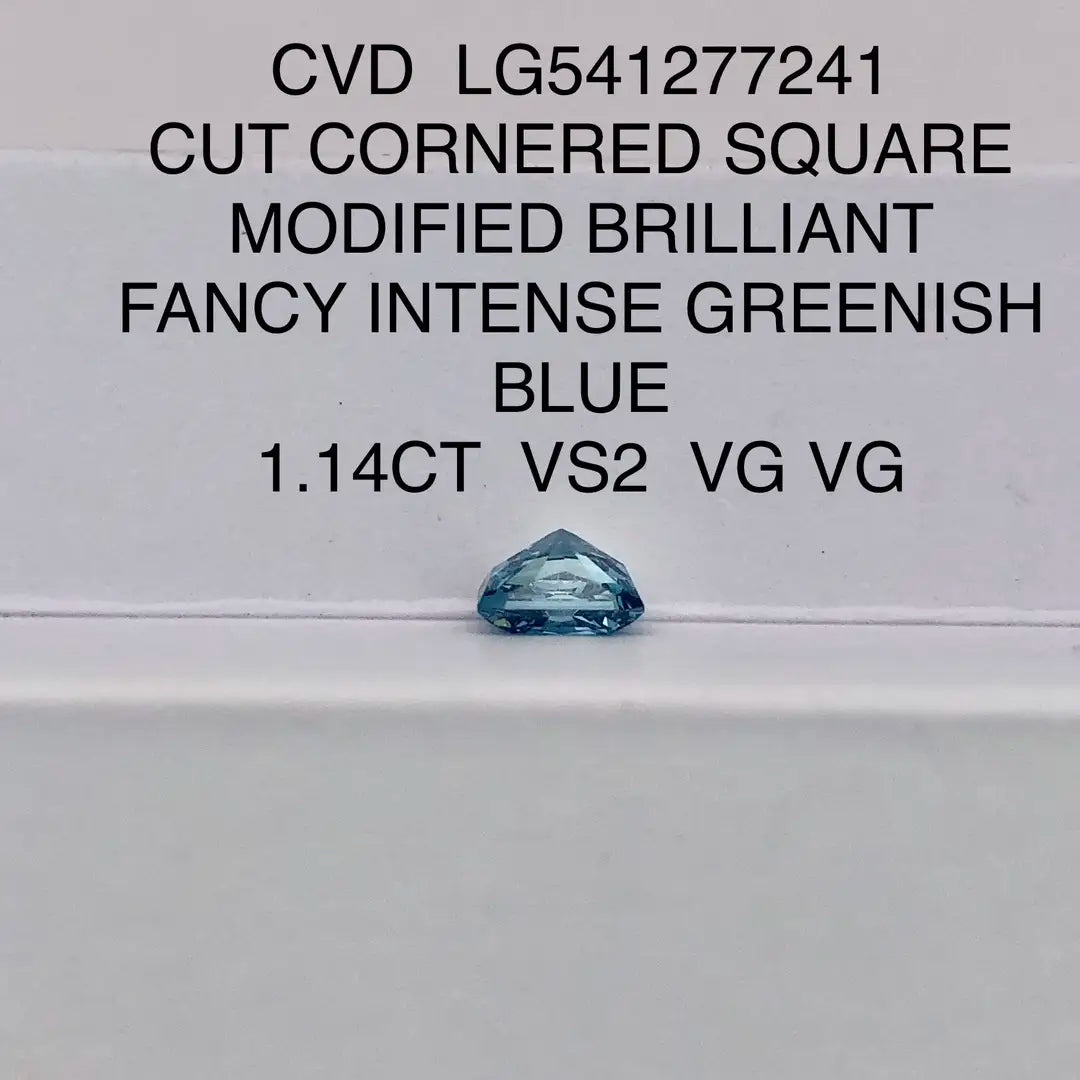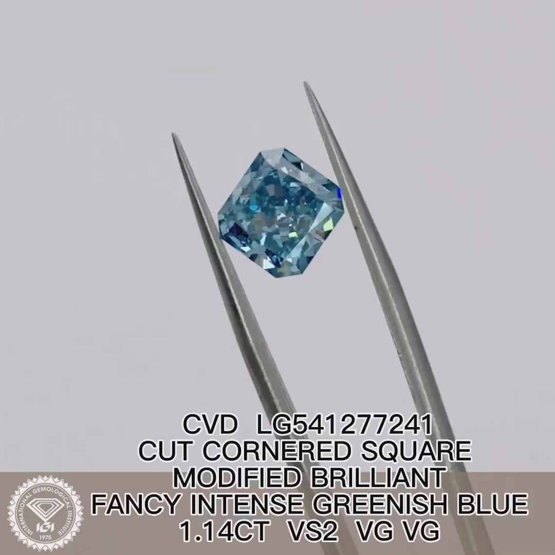 Radiant Cut 1.14ct Fancy Intense Greenish Blue VS2 CVD Lab Grown Diamond IGI Certificate LG541277241