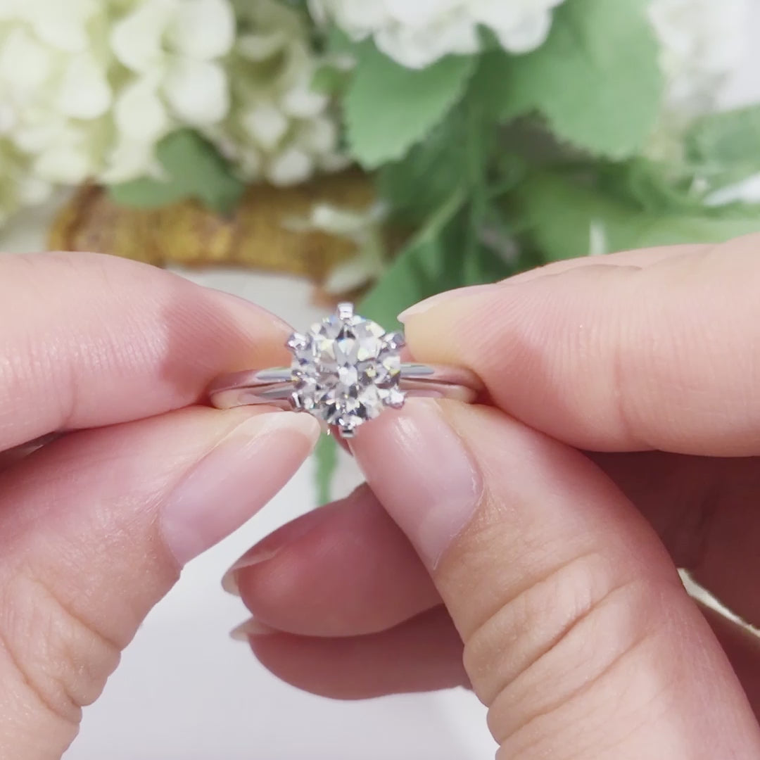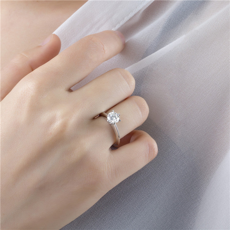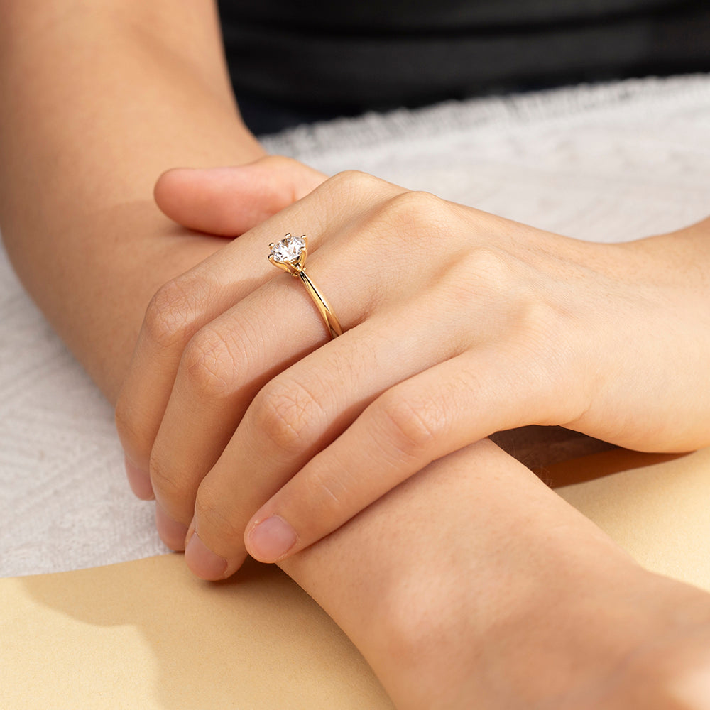 In a world of fleeting trends, the Eco-058 ring stands as a quiet declaration of timeless love. At its center lies a 1ct round brilliant-cut lab-grown diamond, D color and VVS1 clarity, ethically created and IGI certified. Held by six slender prongs, the diamond rises with grace—its facets catching light like a heartbeat suspended in gold.