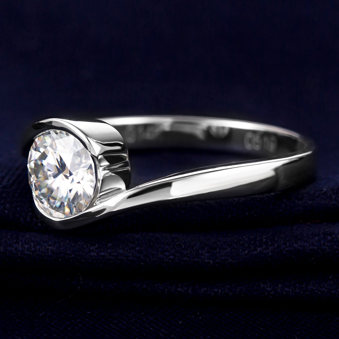 In the quiet curve of gold, the Eco-059 ring captures a moment of poised elegance—like a swan mid-glide, serene yet powerful. At its heart rests a 1ct round brilliant-cut lab-grown diamond, D color and VVS1 clarity, ethically created and IGI certified. Suspended in a tension-style setting, the diamond appears to float between two sculpted arcs of 18K gold, allowing light to pass freely and brilliance to bloom.
