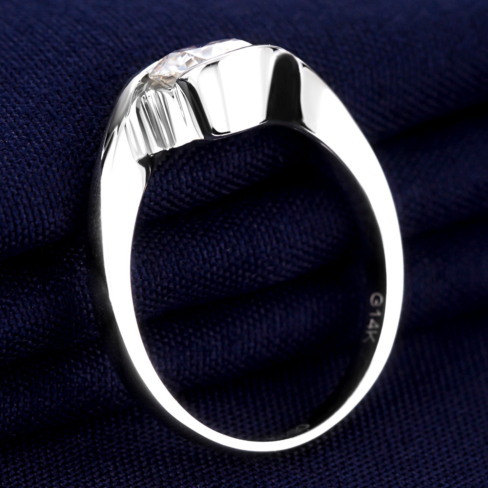 The band's bypass design cradles the stone with grace, its polished surface reflecting both light and memory. This ring is a study in balance—between strength and softness, modernity and timelessness. Inside the band, your story can be etched: a name, a vow, a date that changed everything.