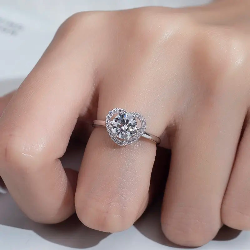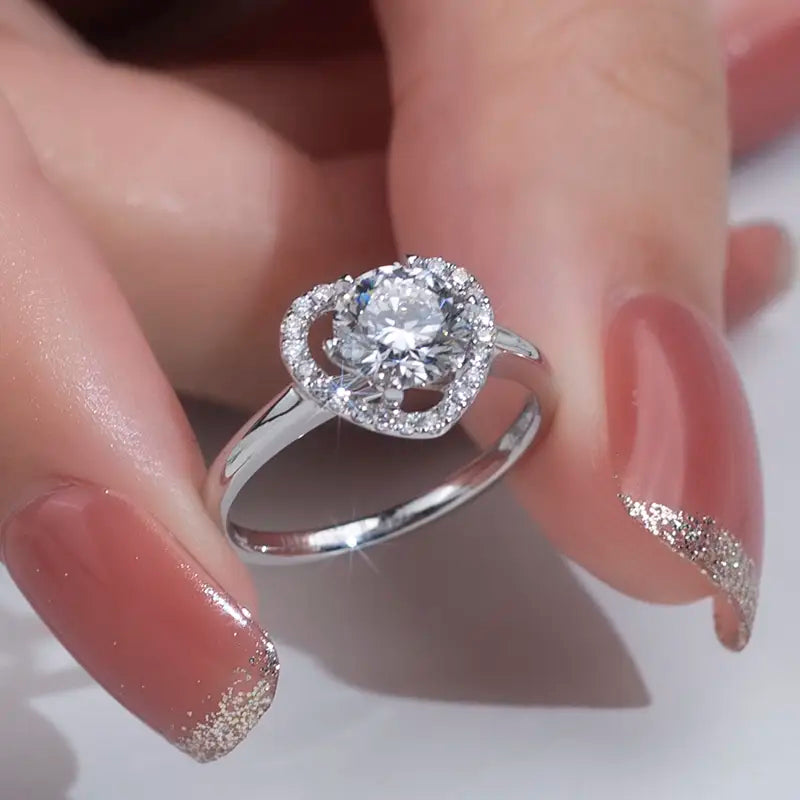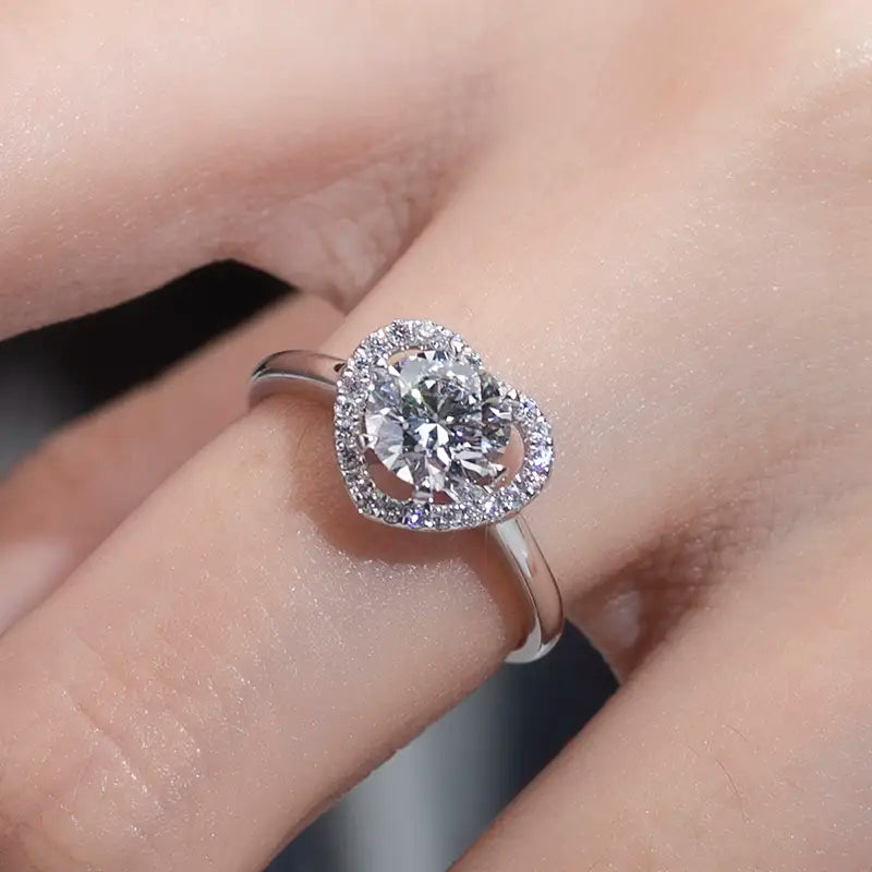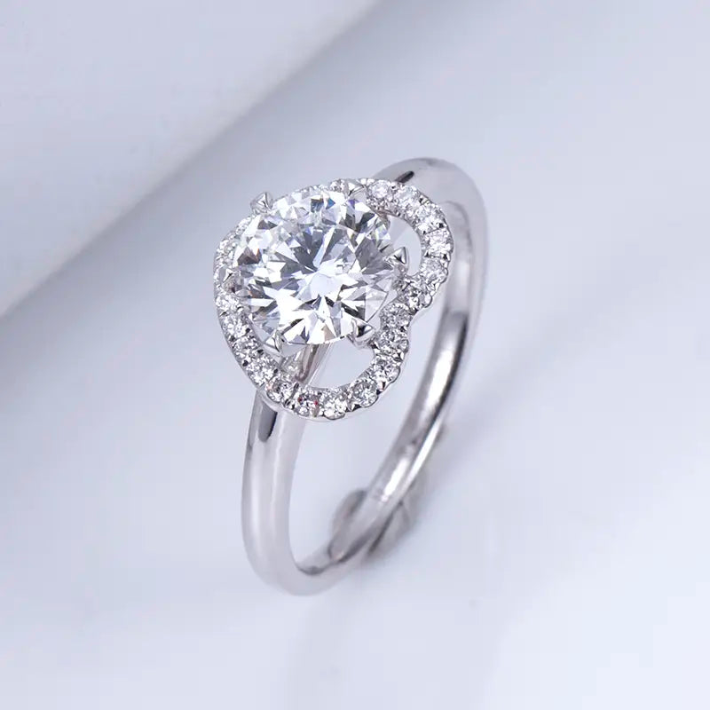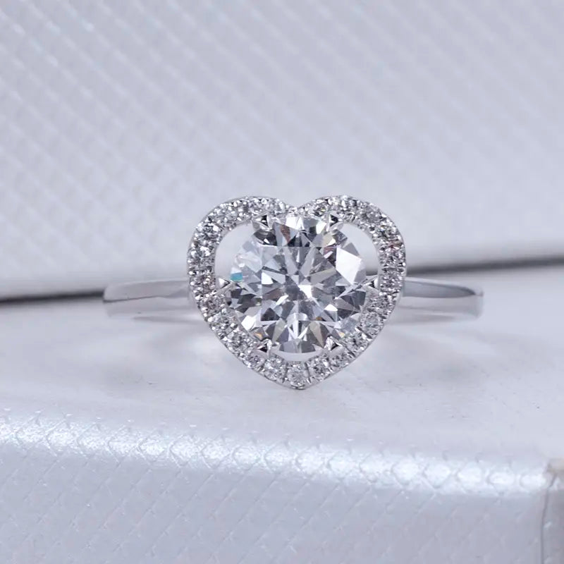 Eco-1108 “Heart For Love” 1CT D VS1 Lab-Grown Diamond Ring in 18K White Gold