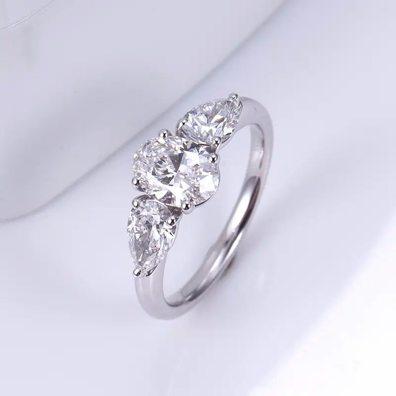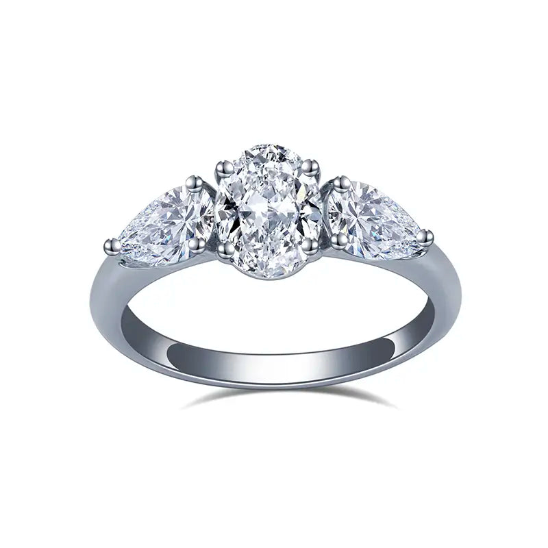 Eco-1203 | 18K White Gold Three-Stone 1.03CT Oval Lab-Grown Diamond Ring