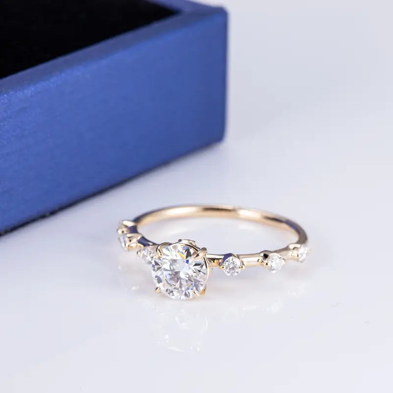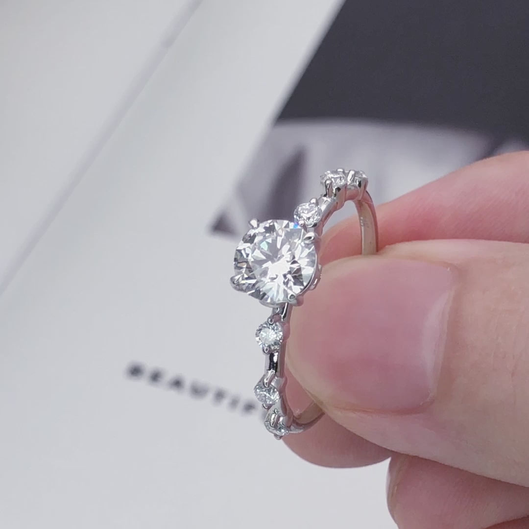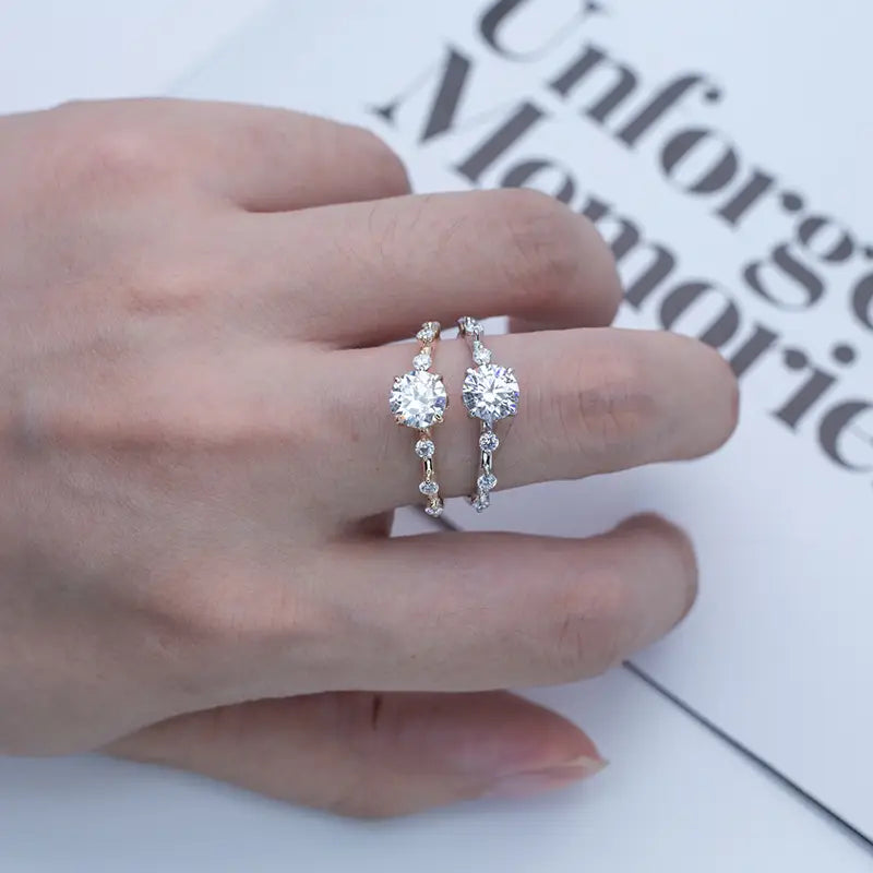 Each diamond is nestled in a shared prong setting, allowing light to pass freely and dance across the surface with every movement. The design is both classic and contemporary—refined enough for everyday wear, yet radiant enough to mark life's most unforgettable moments.