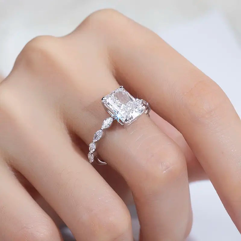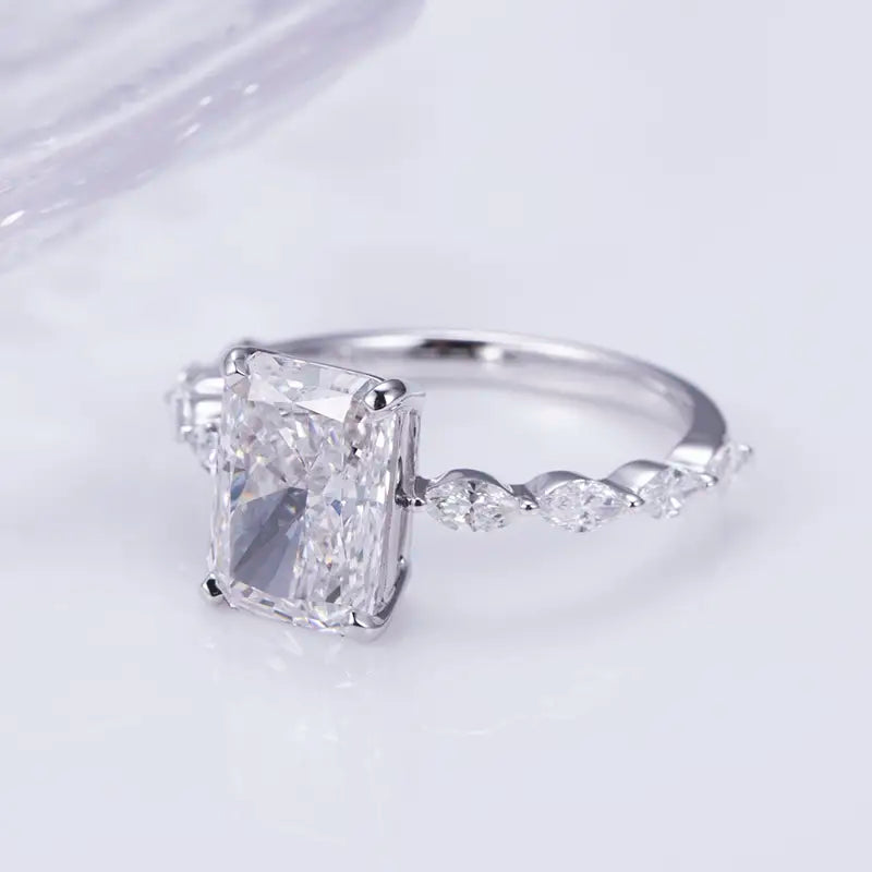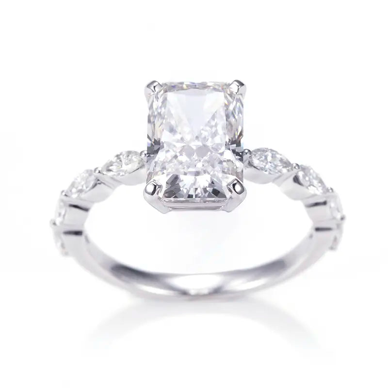Eco-1304 | 18K White Gold 3.40CT Radiant-Cut Lab-Grown Diamond Ring