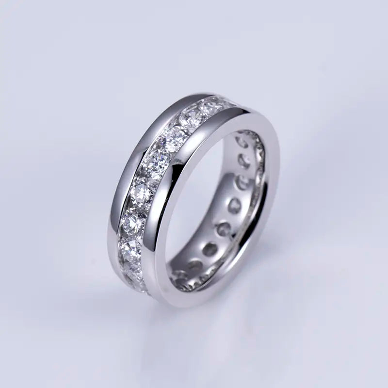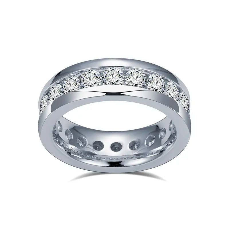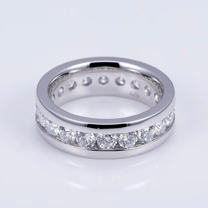 | Main & Side Stones: | Round-cut lab-grown diamonds, channel-set in dual rows |