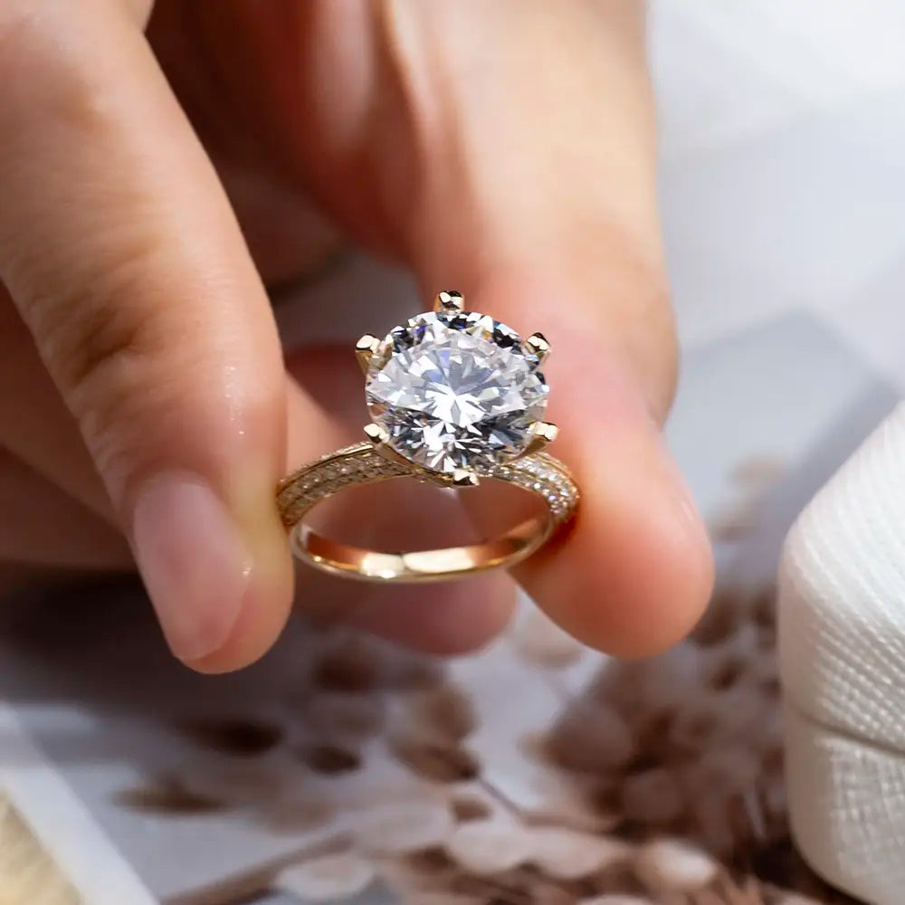 | Main Stone: | 5CT round-cut lab-grown diamond, six-prong setting |