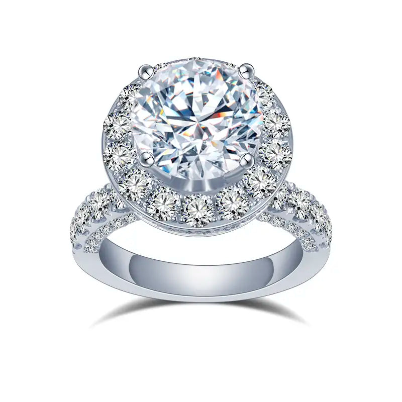 | Main Stone: | 10CT round-cut lab-grown diamond (HPHT/CVD), six-prong setting |