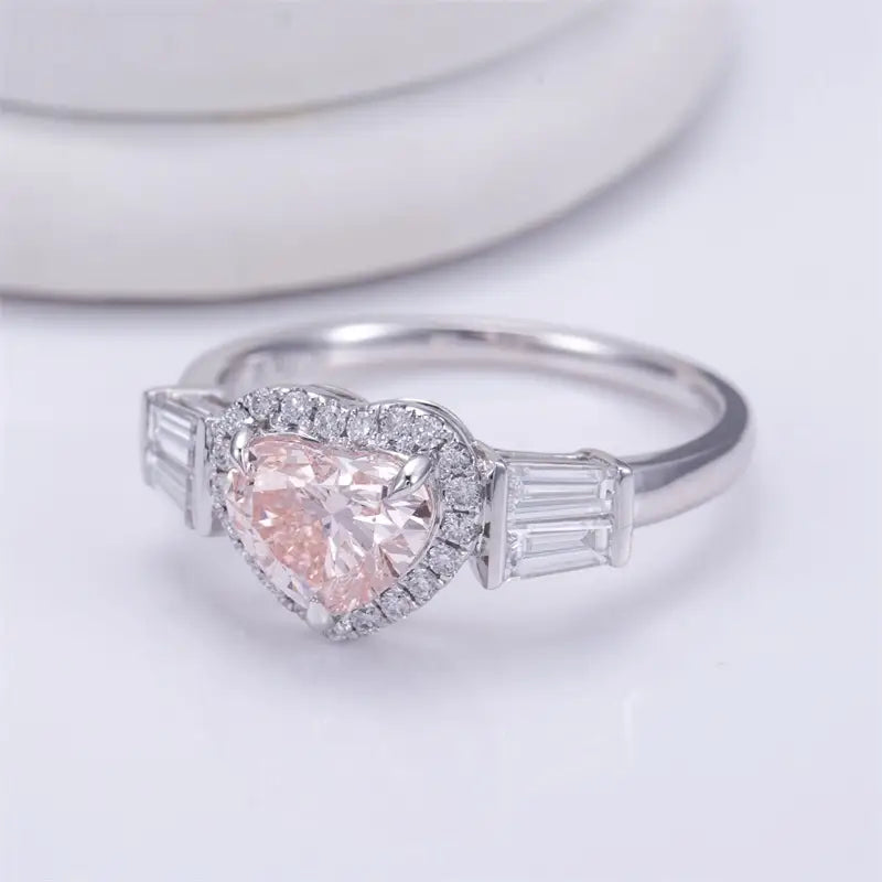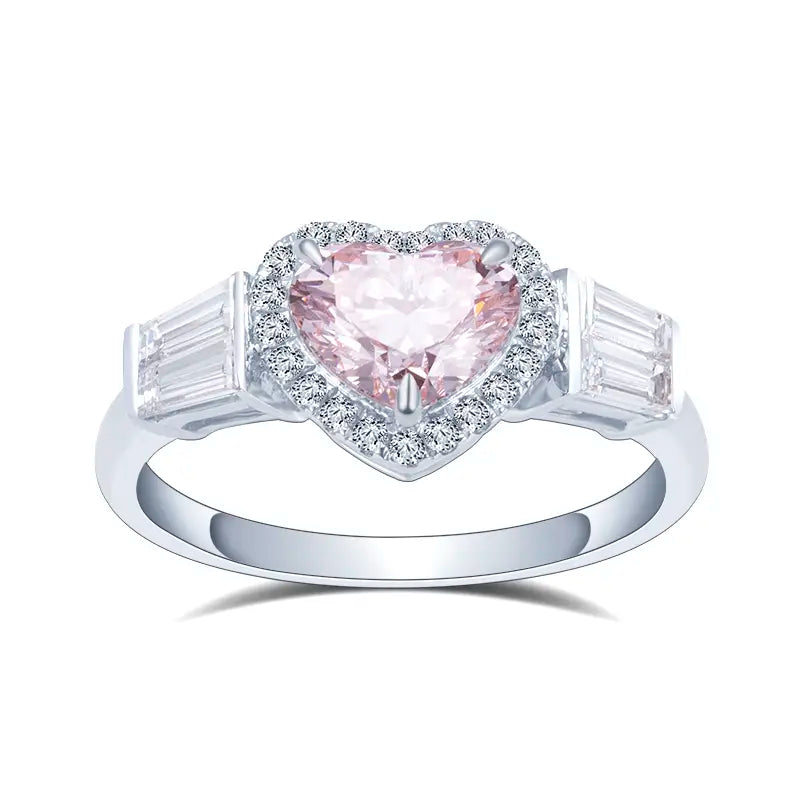 Eco-1461 Heart-Cut Lab-Grown Diamond Ring in 9K/14K/18K White Gold – Custom Color Jewelry
