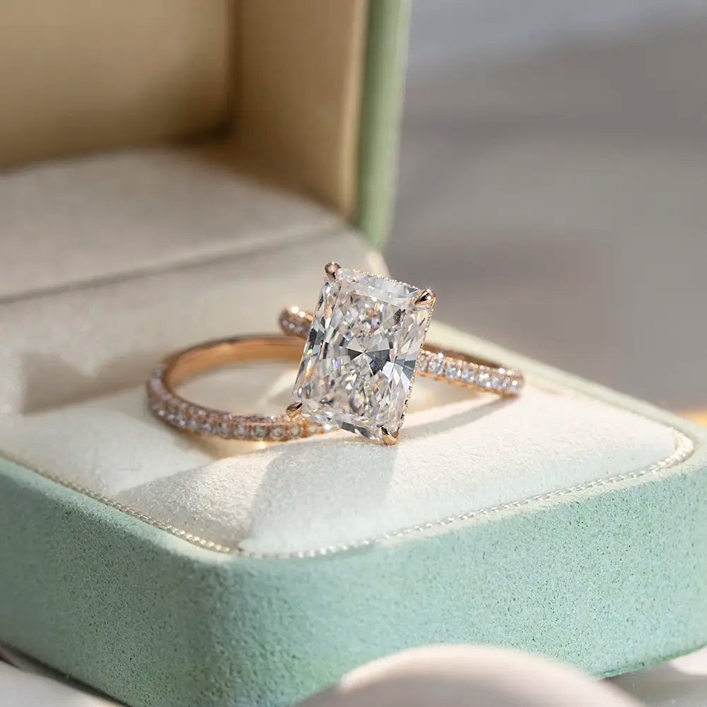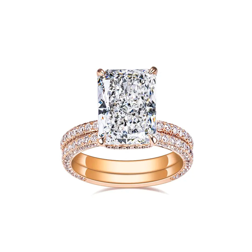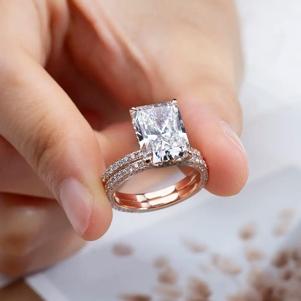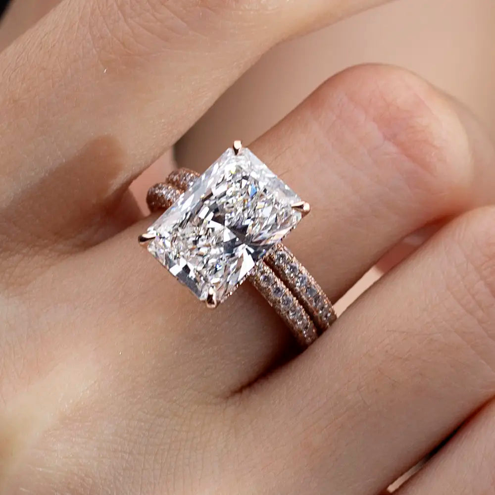 Eco-1664 | 18K Rose Gold 5.72CT Radiant-Cut Lab Diamond Ring