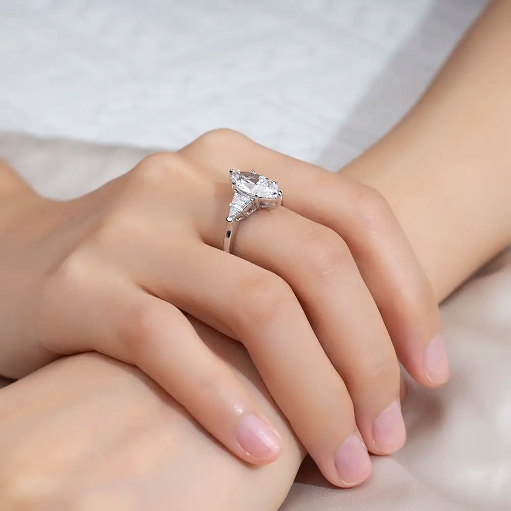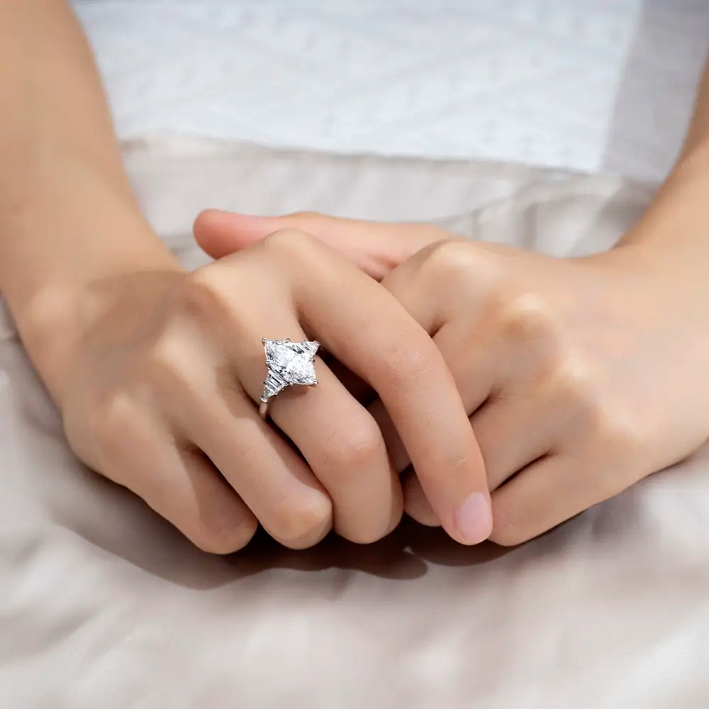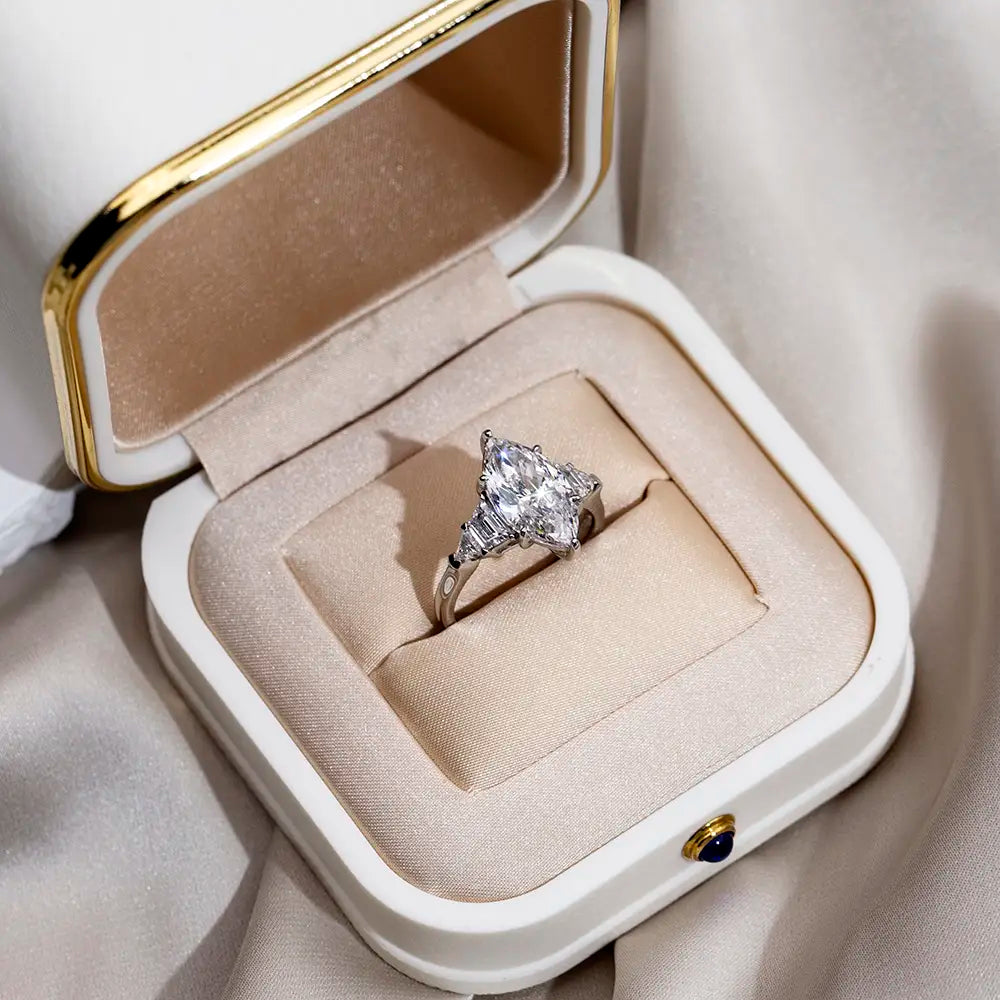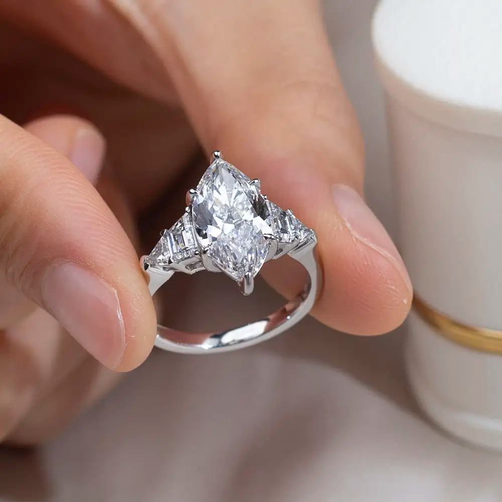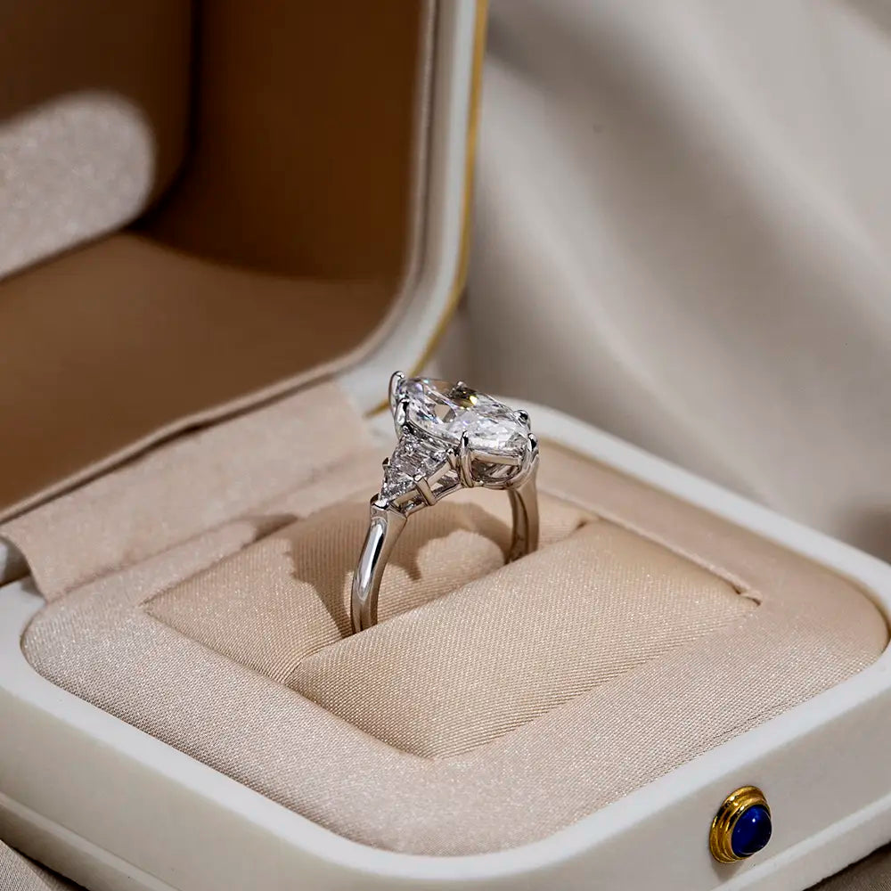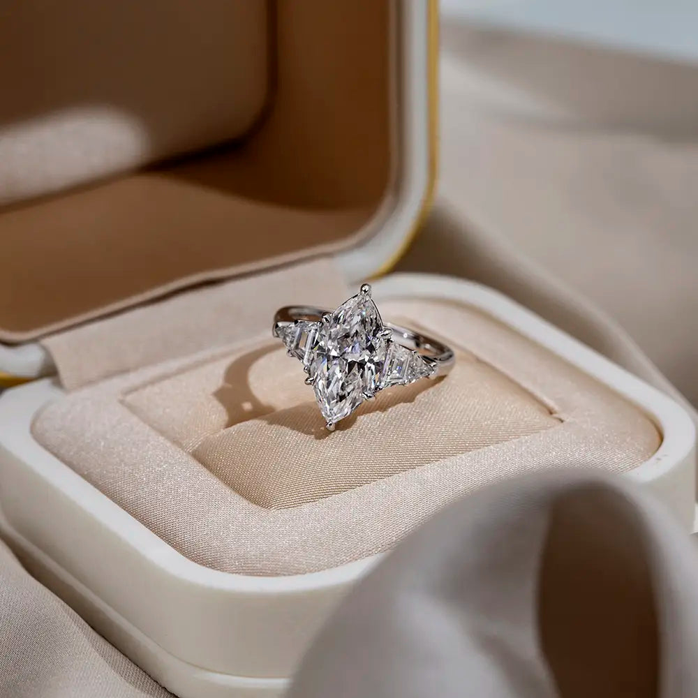 Marquise center with triangular sides—a perfect symphony of geometric precision and timeless elegance.