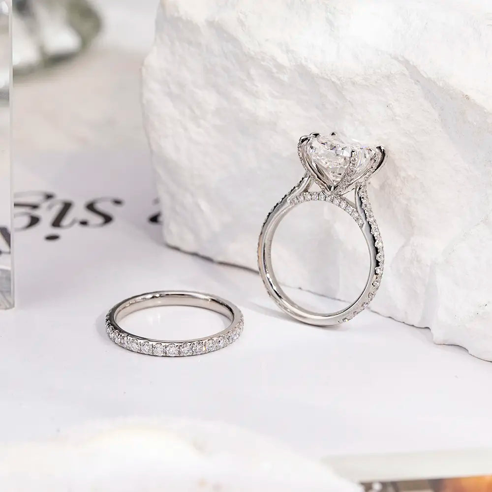 - Side Stones: Micro-set round lab-grown diamonds along both bands