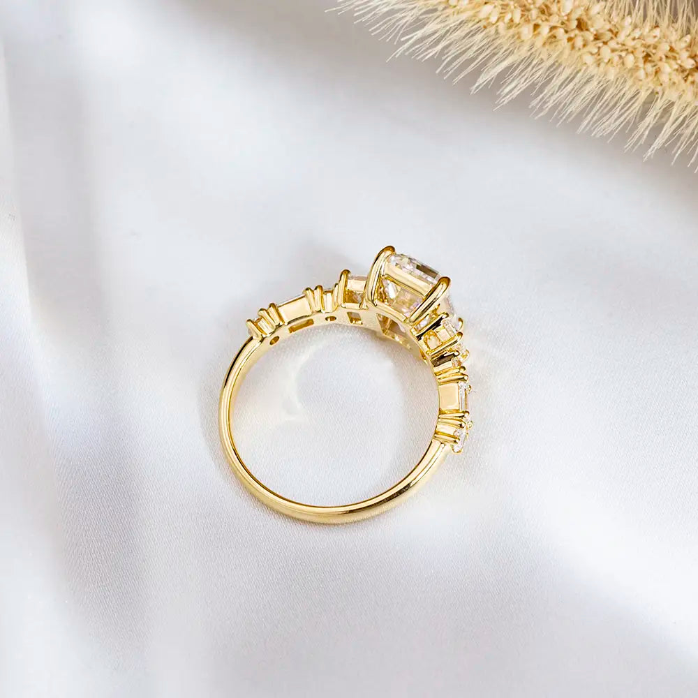 Eco-1810 | 18K Yellow Gold Emerald-Cut Lab Diamond Ring