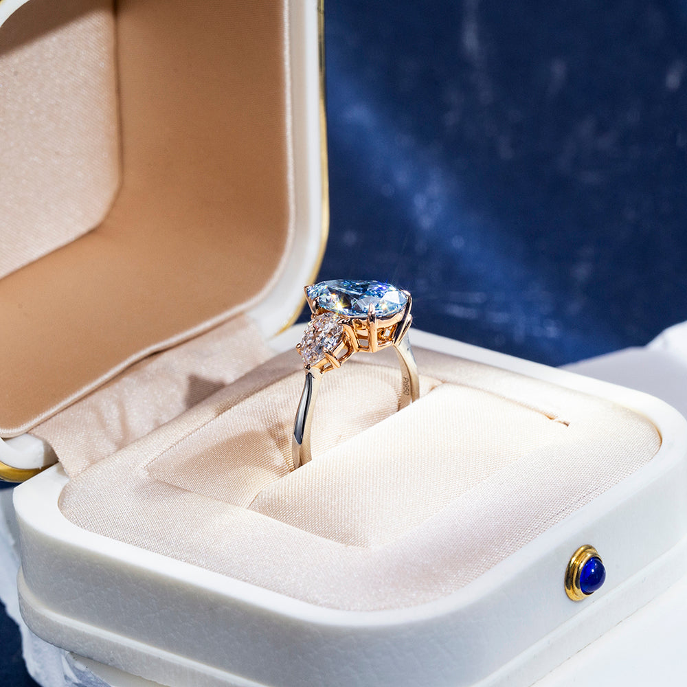 Center Stone: Lab-Grown Pear-Cut Blue Sapphire (approx. 2.2 ct.)