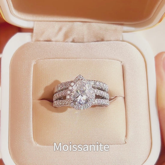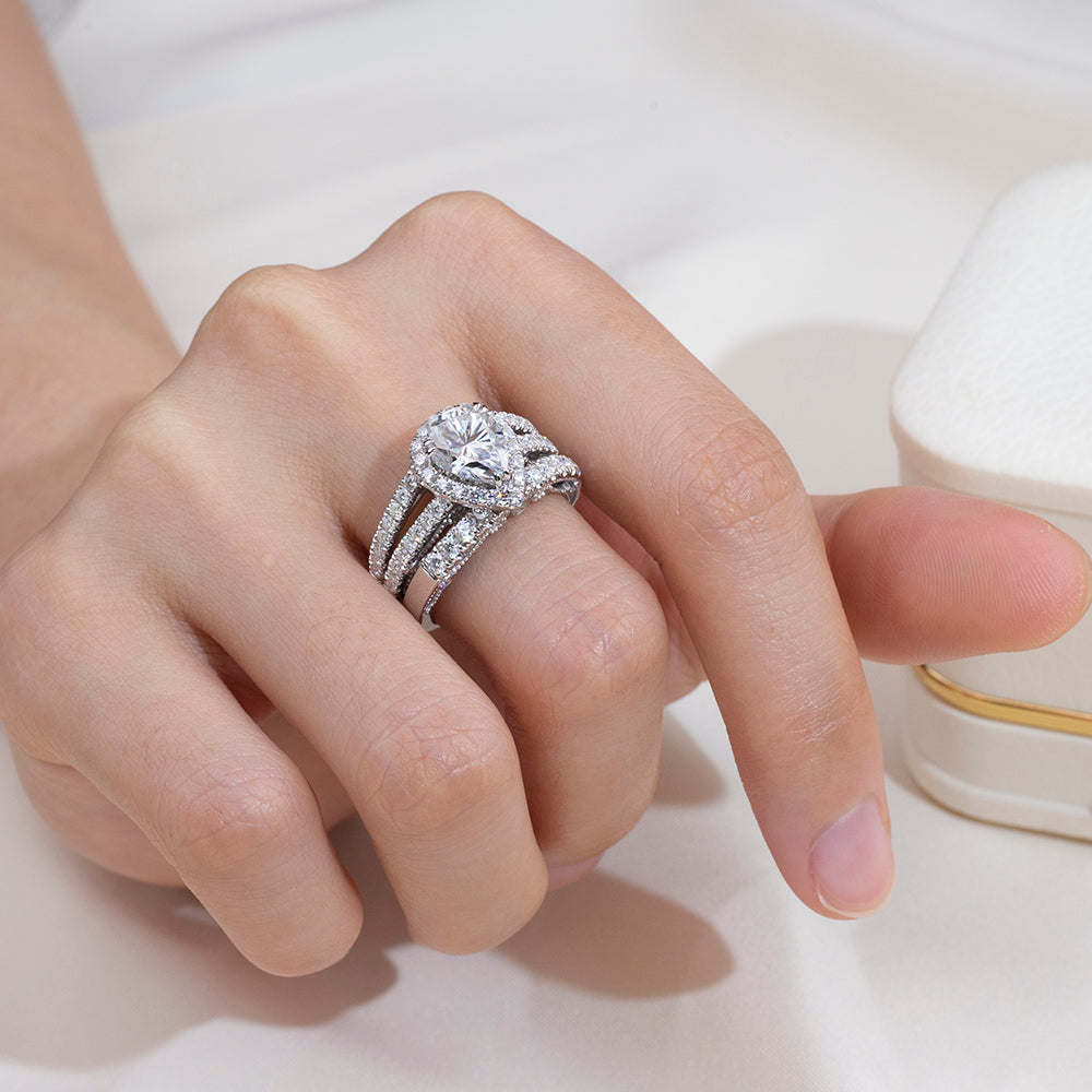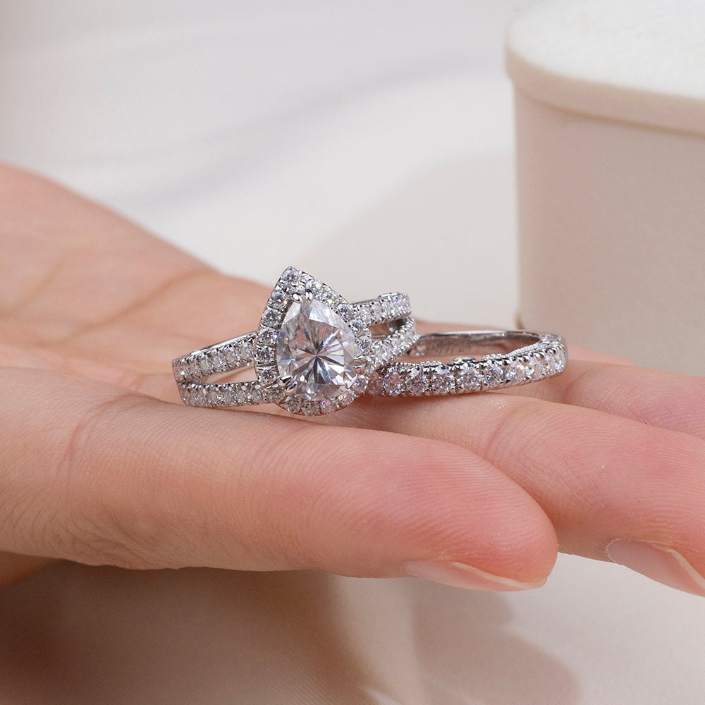 Eco-1857: Tears of Light – Lab-Grown Pear Diamond Halo Bridal Set in 18K White Gold