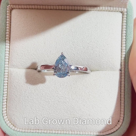 At its center lies a lab-grown pear-cut blue diamond, chosen for its serene hue and exceptional brilliance. The pear shape, with its graceful taper and brilliant facets, symbolizes both emotion and direction—making it a meaningful choice for engagements or personal milestones.