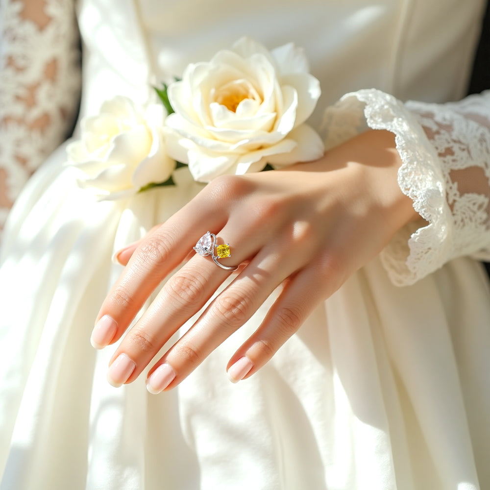 Perfect Contrast: Paired with a clear diamond, the yellow stone creates a captivating interplay of light and color.