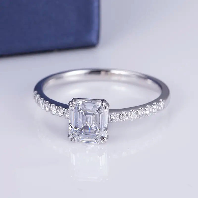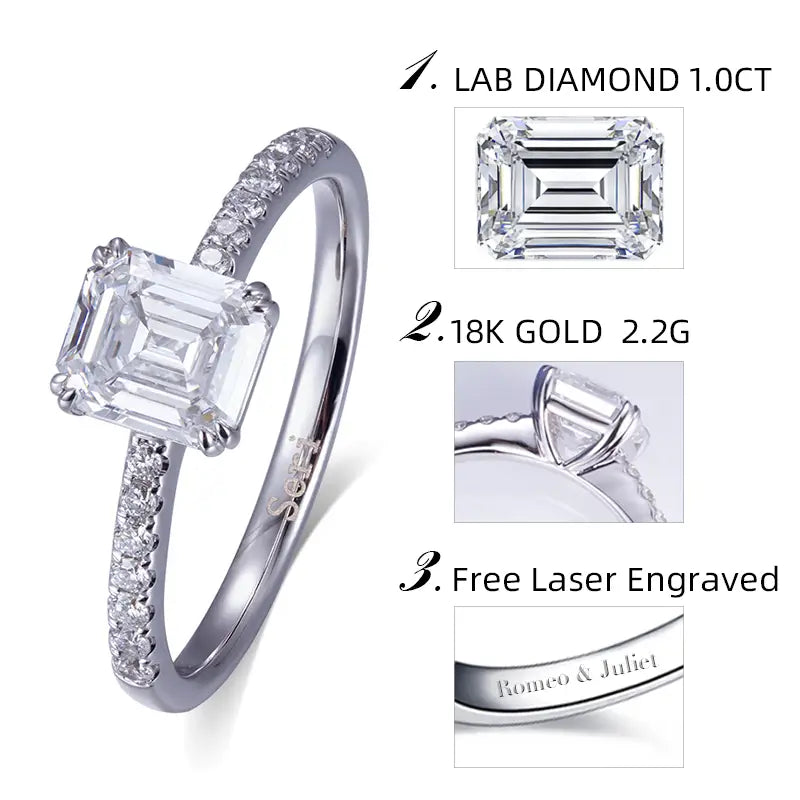 Eco-564 | 18K White Gold 1CT Emerald-Cut Lab-Grown Diamond Ring