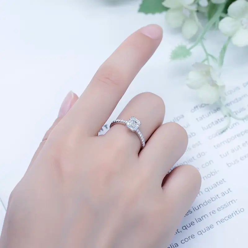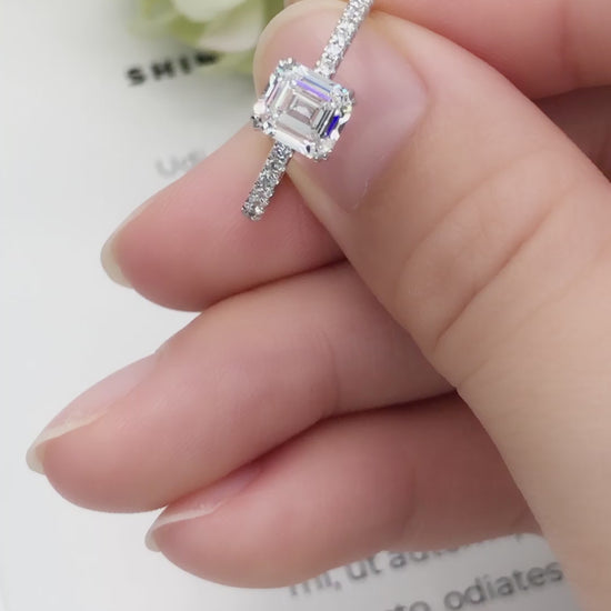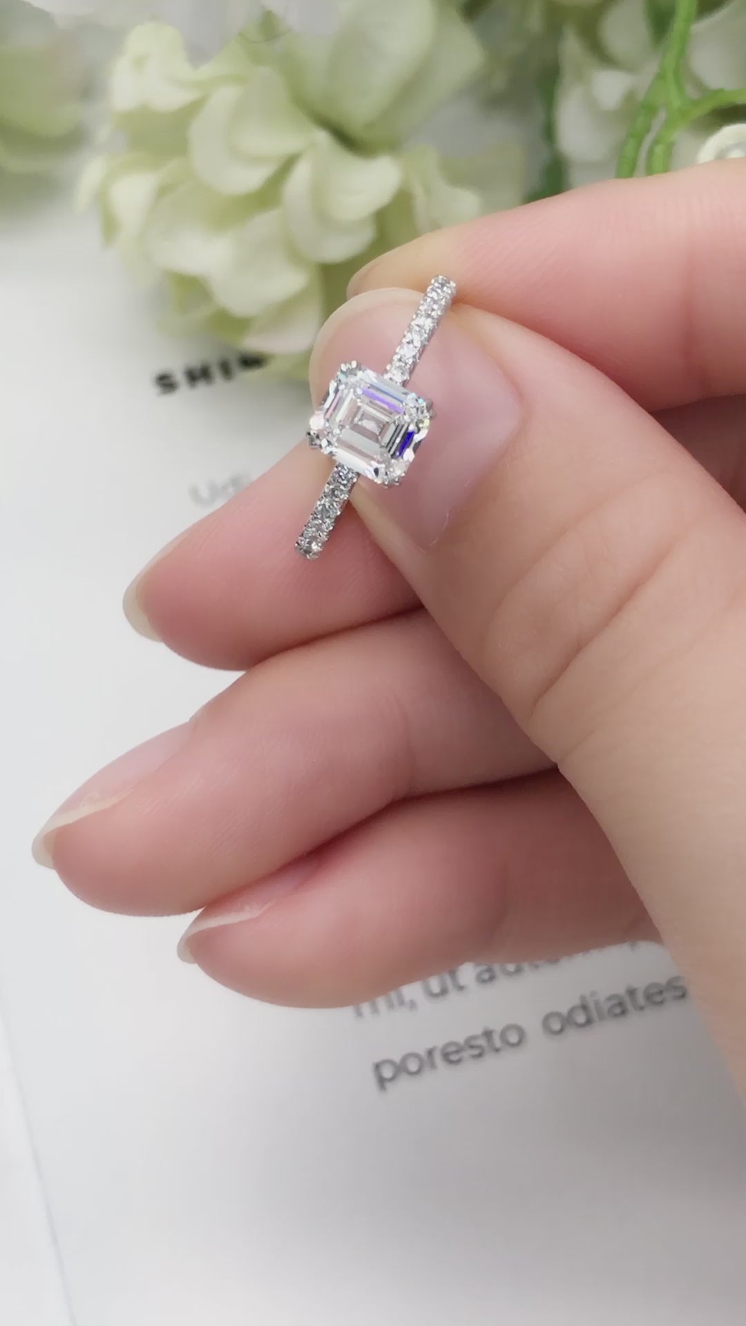 - Main Stone:1ct Lab-Grown Diamond (Emerald Cut, DEF color, VS clarity)