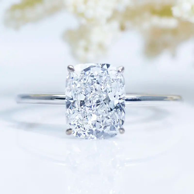 Eco-581 | Cushion-Cut Lab Diamond Solitaire Ring in 18K White Gold By Ecogemma