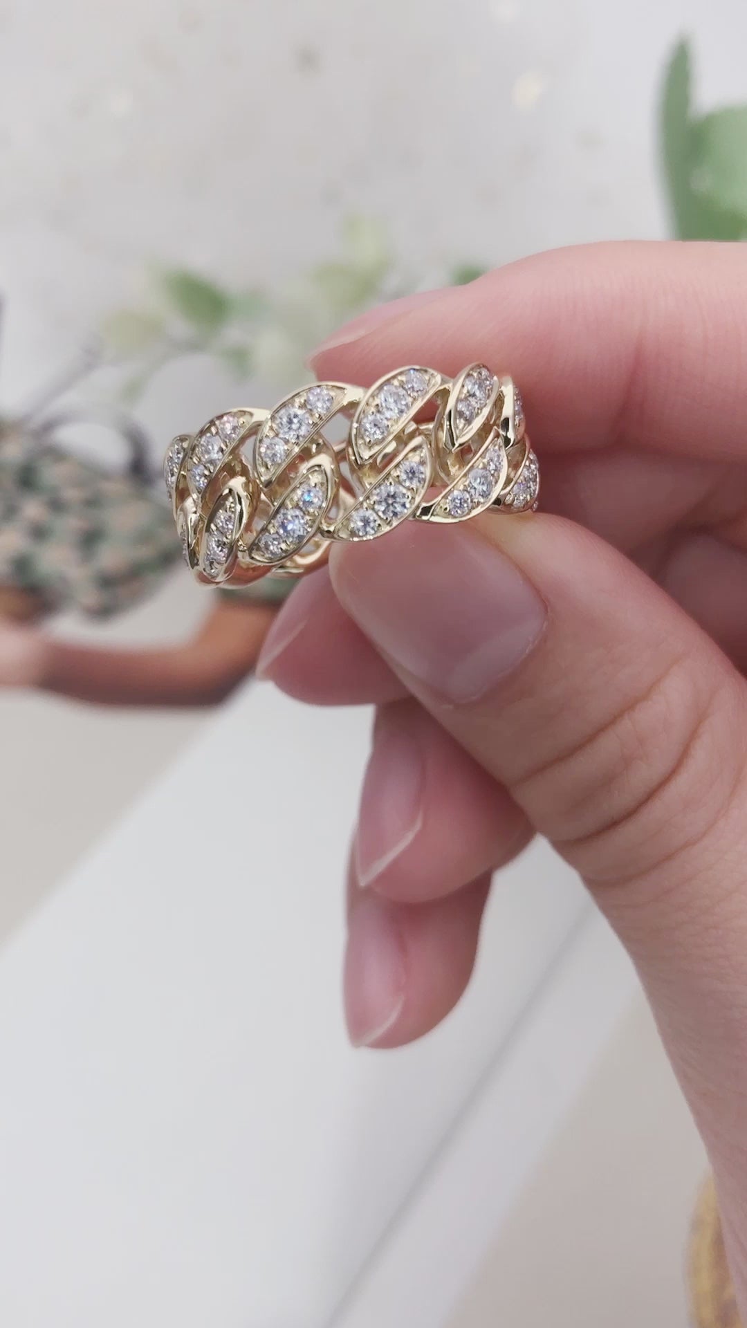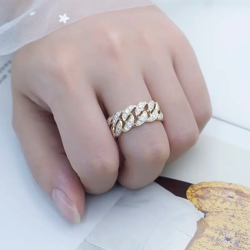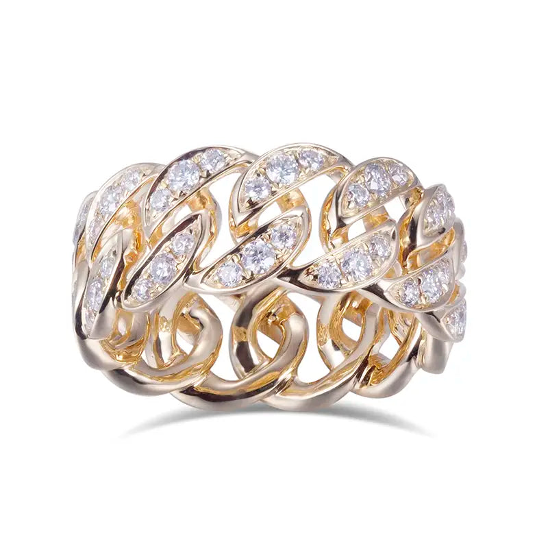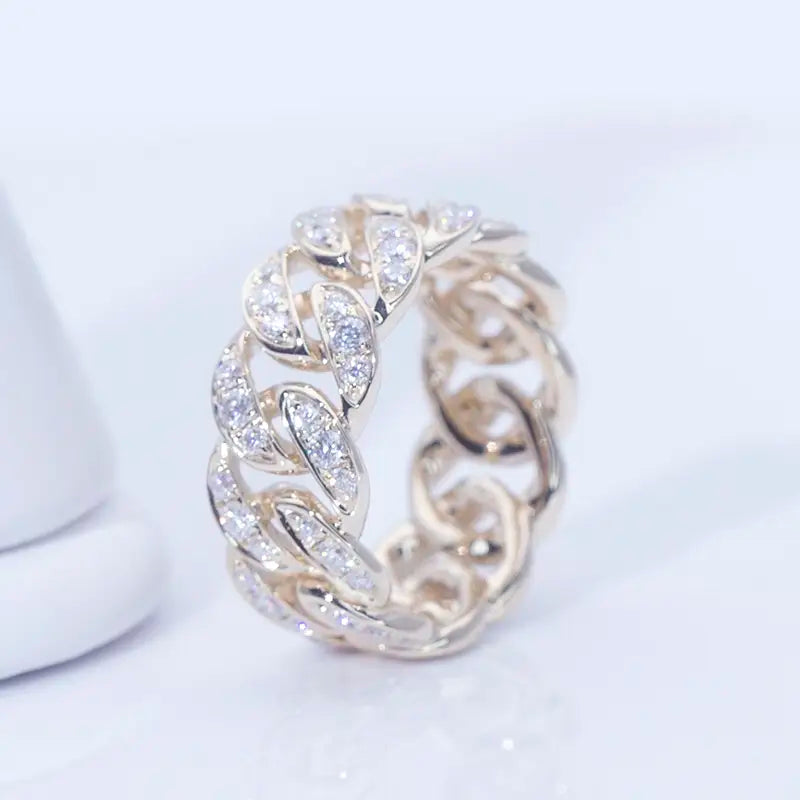 Eco-628 18K Yellow Gold Moissanite Chain-Link Eternity Ring