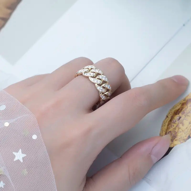 This statement piece features a chain-link design, each polished link meticulously set with brilliant-cut moissanite stones that shimmer with fire and clarity. The 1.5 carat equivalent moissanite, precision-cut to ideal proportions, scatters rainbow light across every gesture—whether raised in a toast or wrapped around a handwritten love note.