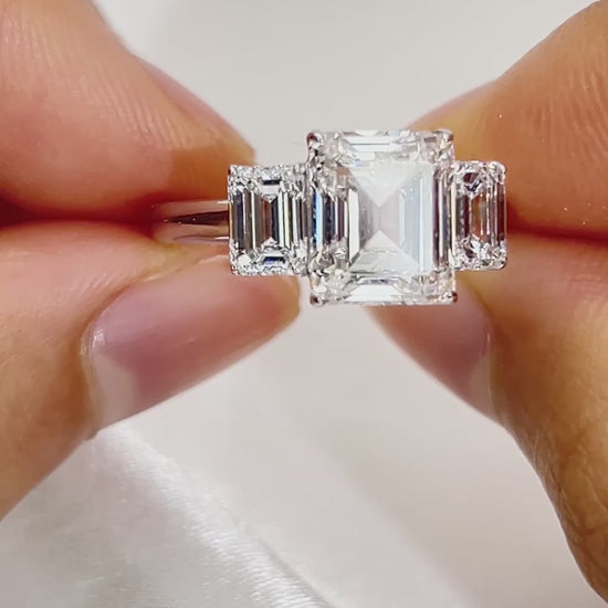Eco-741 | 3ct Emerald-Cut Lab Diamond Ring in PT950 Platinum By Ecogemma