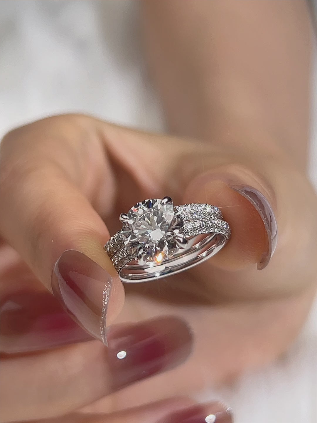 At its center glows a 2.58 carat round brilliant lab-grown diamond, created through advanced HPHT/CVD technology, graded F color, VS1 clarity, and indistinguishable from mined diamonds to the naked eye.