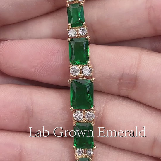 Ecob-555 "Verdant Rhythm" Lab-Grown Emerald & Diamond Link Bracelet